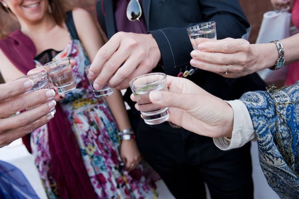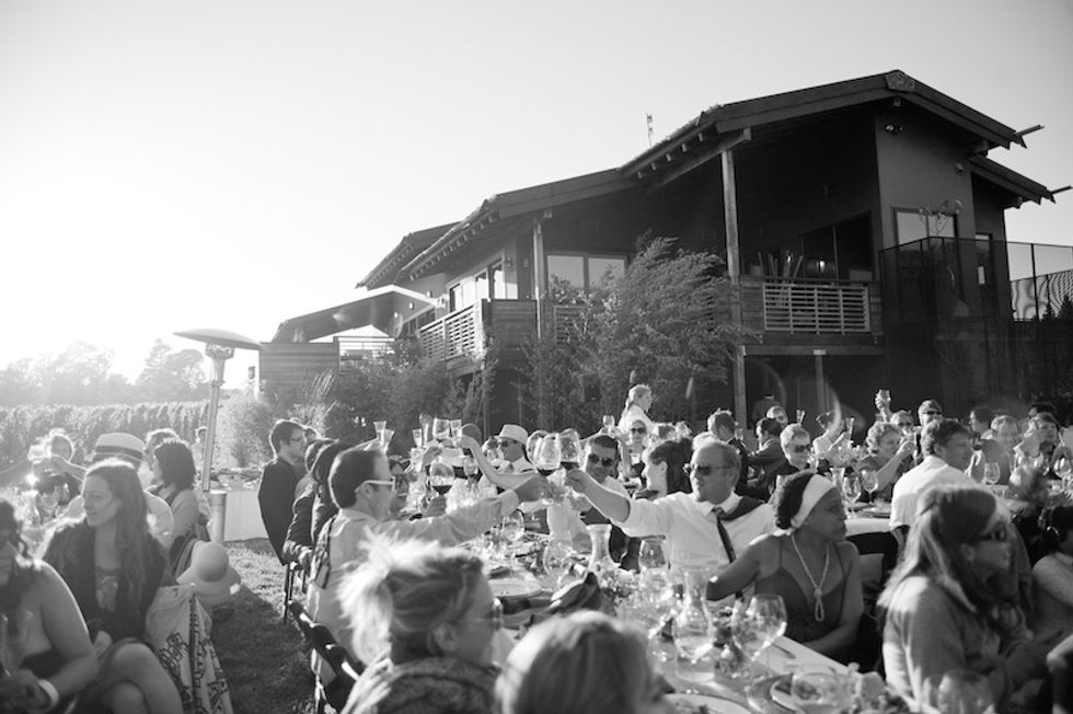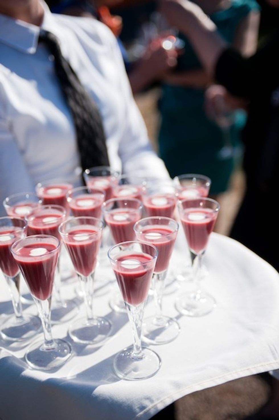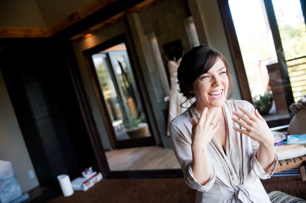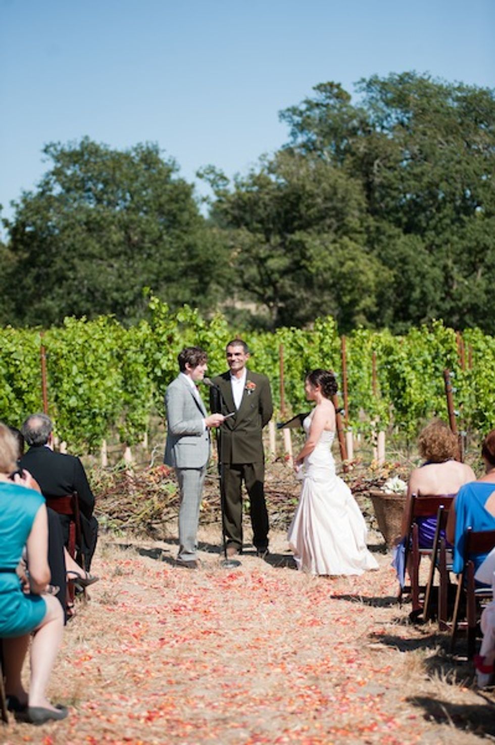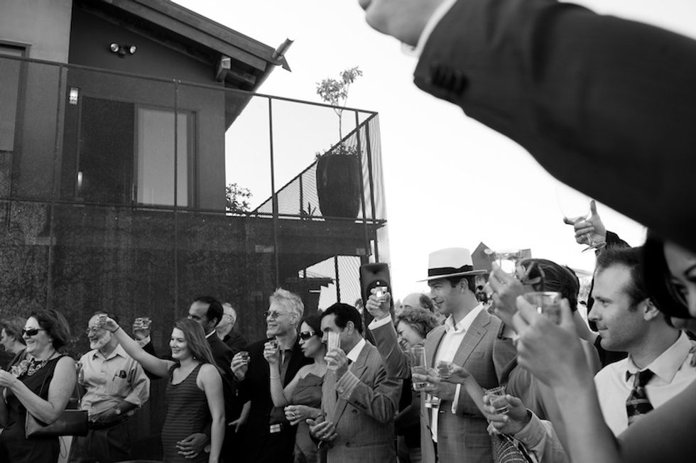 Masha and Francisco were married on a beautiful private estate in Sonoma County in Sebastopol. The bride and her family are originally from Russia, so the meal began with a shot of vodka (in glasses that guests took home as a keepsake) and party-goers were encouraged to take pics with an unlikely prop during cocktail hour–a pair of llamas.