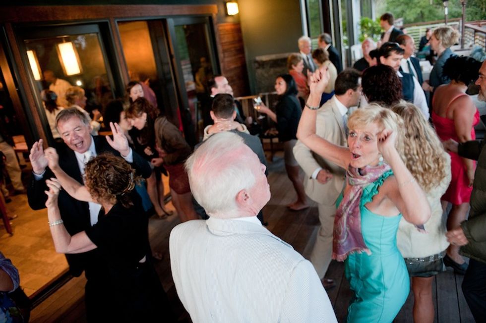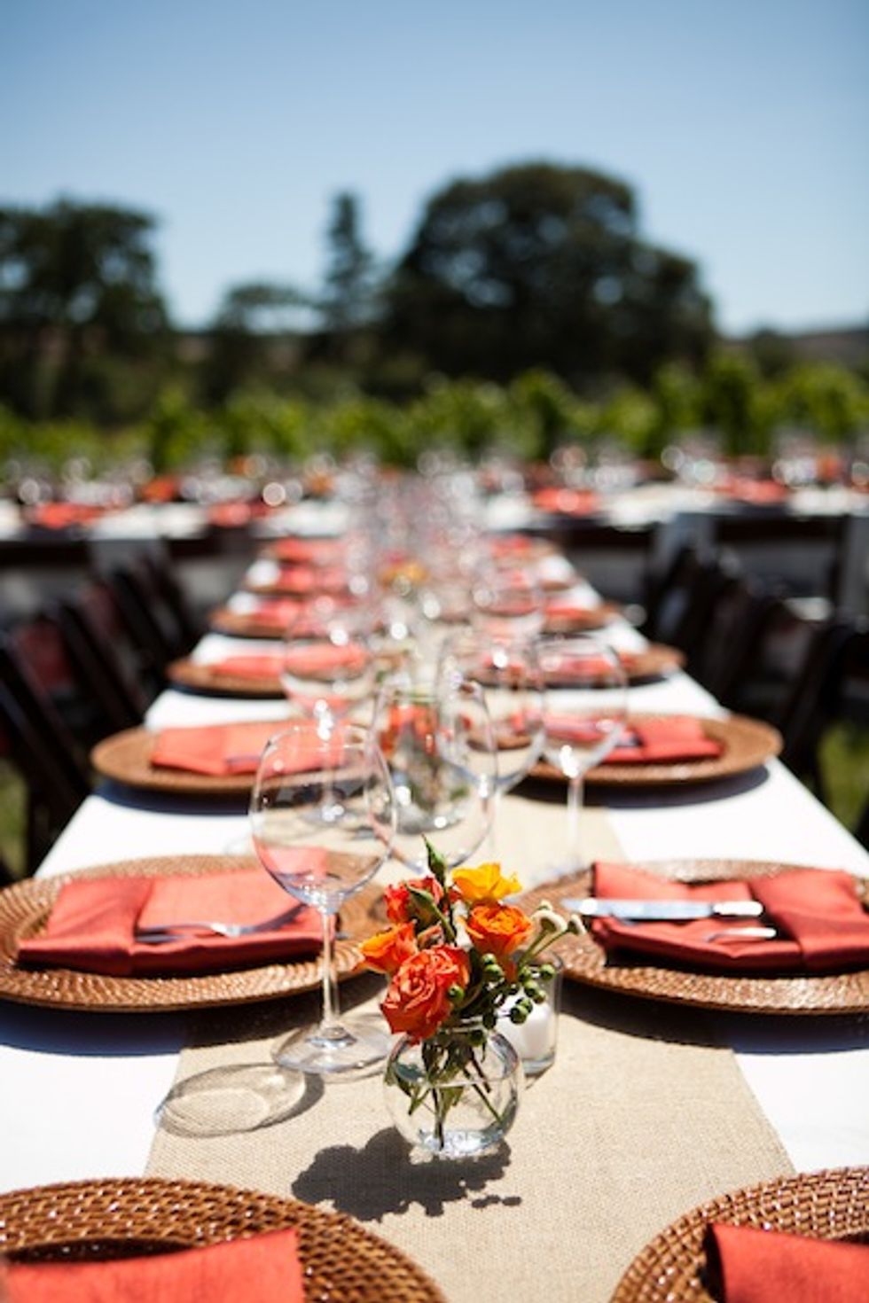 The orange place settings and flowers were an amazing complement to the wood and greens of the estate, and the lovely couple and their guests enjoyed delicious food and danced the night away.