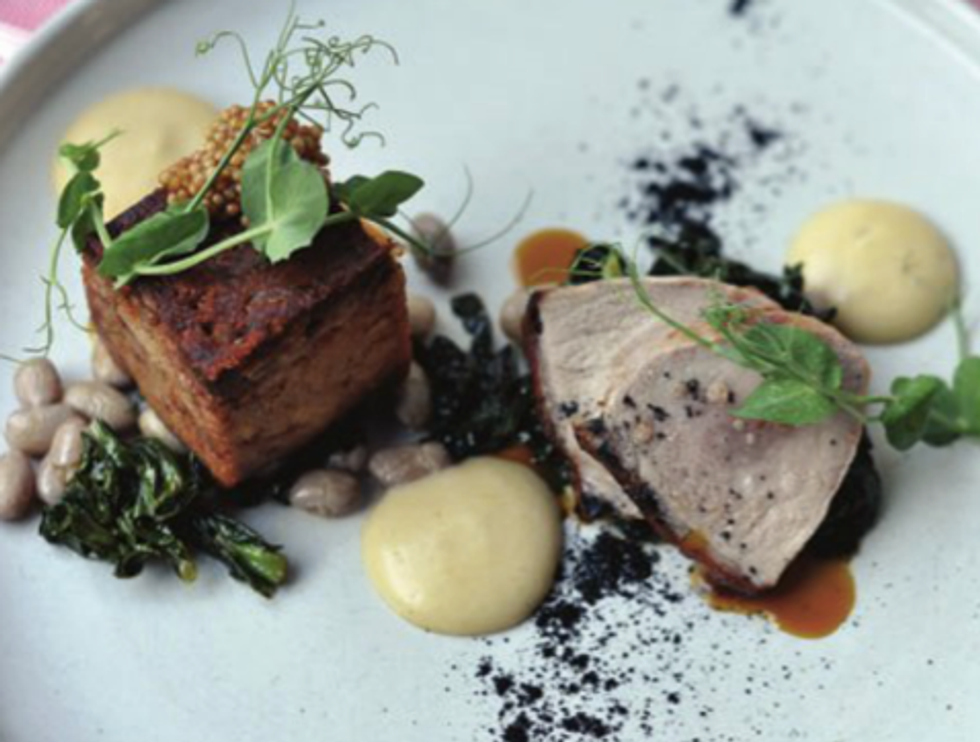 Chef Mark Liberman encapsulates the flavors of summer in his barbeque pork with shelling beans, cornbread, mustard ash and Tuscan kale. He says adding ash allows him to incorporate bold flavors like horseradish into dishes in a new way. Liberman also plays with texture throughout his menu, and ash is a great tool to that end. Sometimes he'll even add whole seeds to ash to create crunch. For this particular pork dish, the mustard ash contains charred onion, celery, fennel and mustard seeds that are then ground into a powder. "We don't have a grill at AQ, so adding ash to a dish allows us to get a charred flavor."