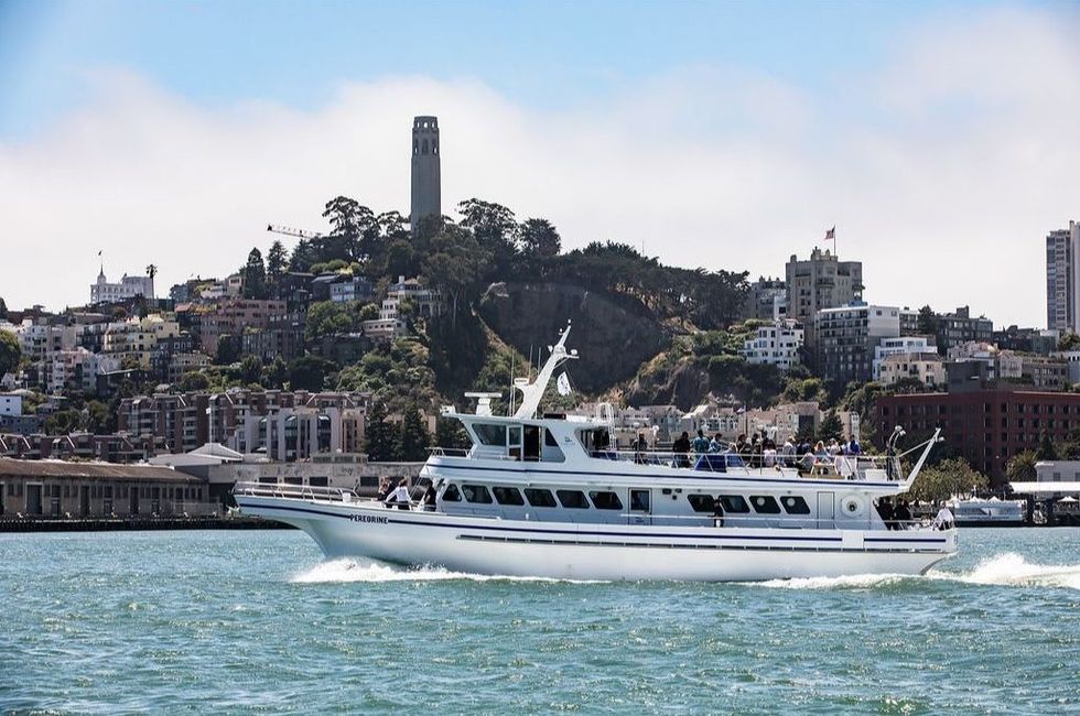 Operated by Tideline Marine Group—the same company running small passenger commuter boats equipped with WiFi, drinks, and flat-screen TVs out of Berkeley to SF's Pier 1.5 and Pier 52—Peregrine is the largest of Tideline's now-four-vessel fleet.