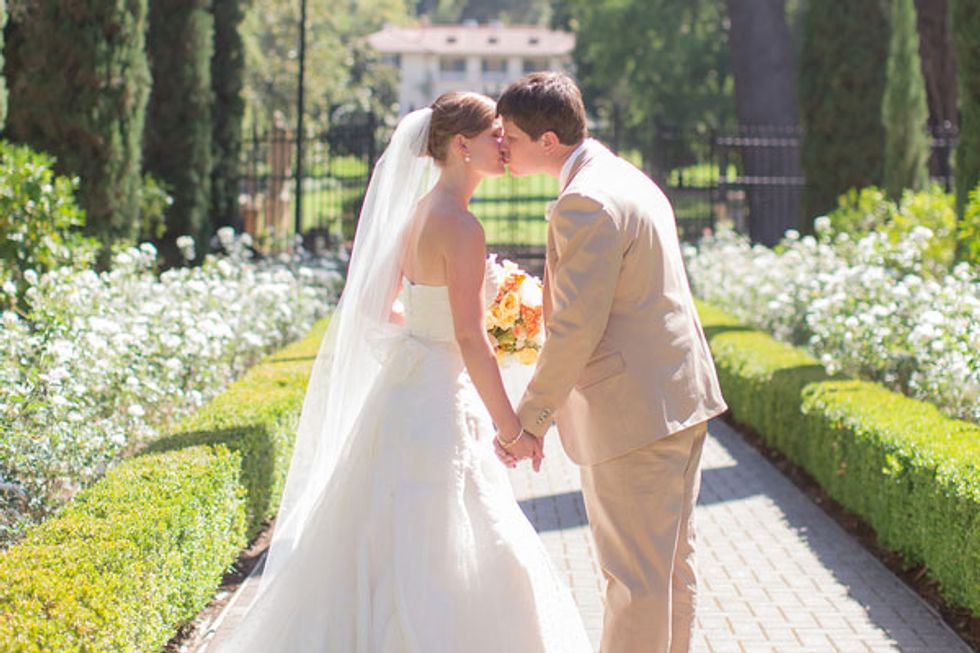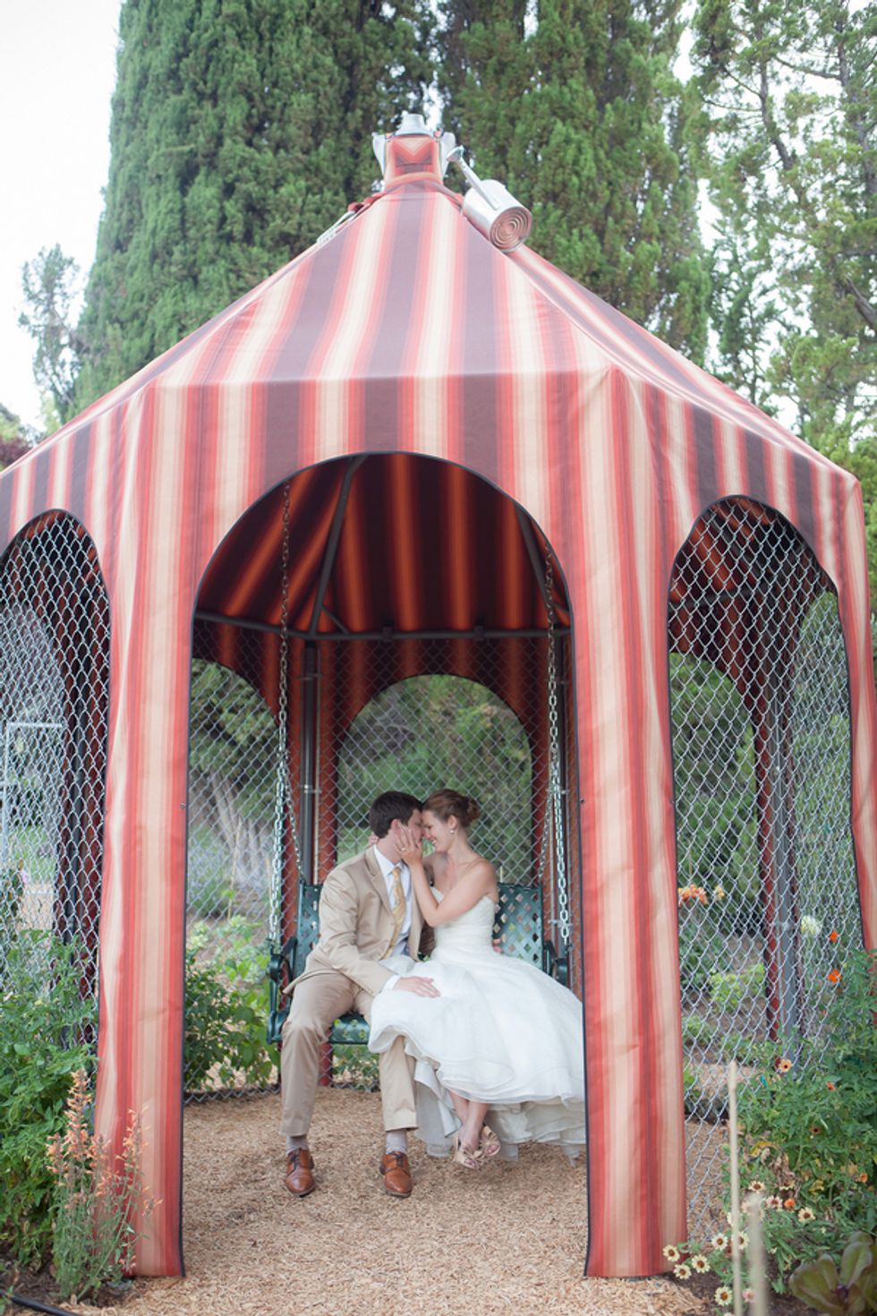 After the ceremony at Stanford Memorial Church, guests were shuttled to Villa Montalvo where Caitlin and Timm had set outdoor lounge furniture throughout the gardens. A signature sangria made with red wine from the bride’s parent’s vineyard was served along with the groom’s favorite beer from his home state of Michigan, “Oberon,” special ordered by the bride as a surprise.