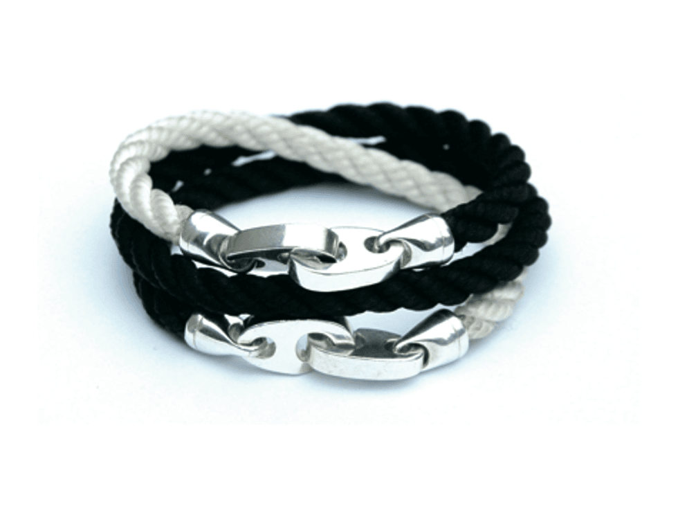 In line with the nautical brigade that's swept fashion, my first crush was Miansai's vast selection of rope bracelets. Ahoy, I wasn't the only fan: J.Crew recently swooped them up. For something neon-like, Links of London's silver and cord bracelets are a pretty penny favorite. For a quicker, cheaper fix, Rugby's classic Nantucket braided bracelets; for a chunkier stunner, behold Proenza Schouler's take made of climbing rope and raffia and cinched with a mini carabiner. Sailormade's effortless black and white Camden wrap combo is build to last with Classic Brummel hooks and real sailing rope and can be found at Unionmade.