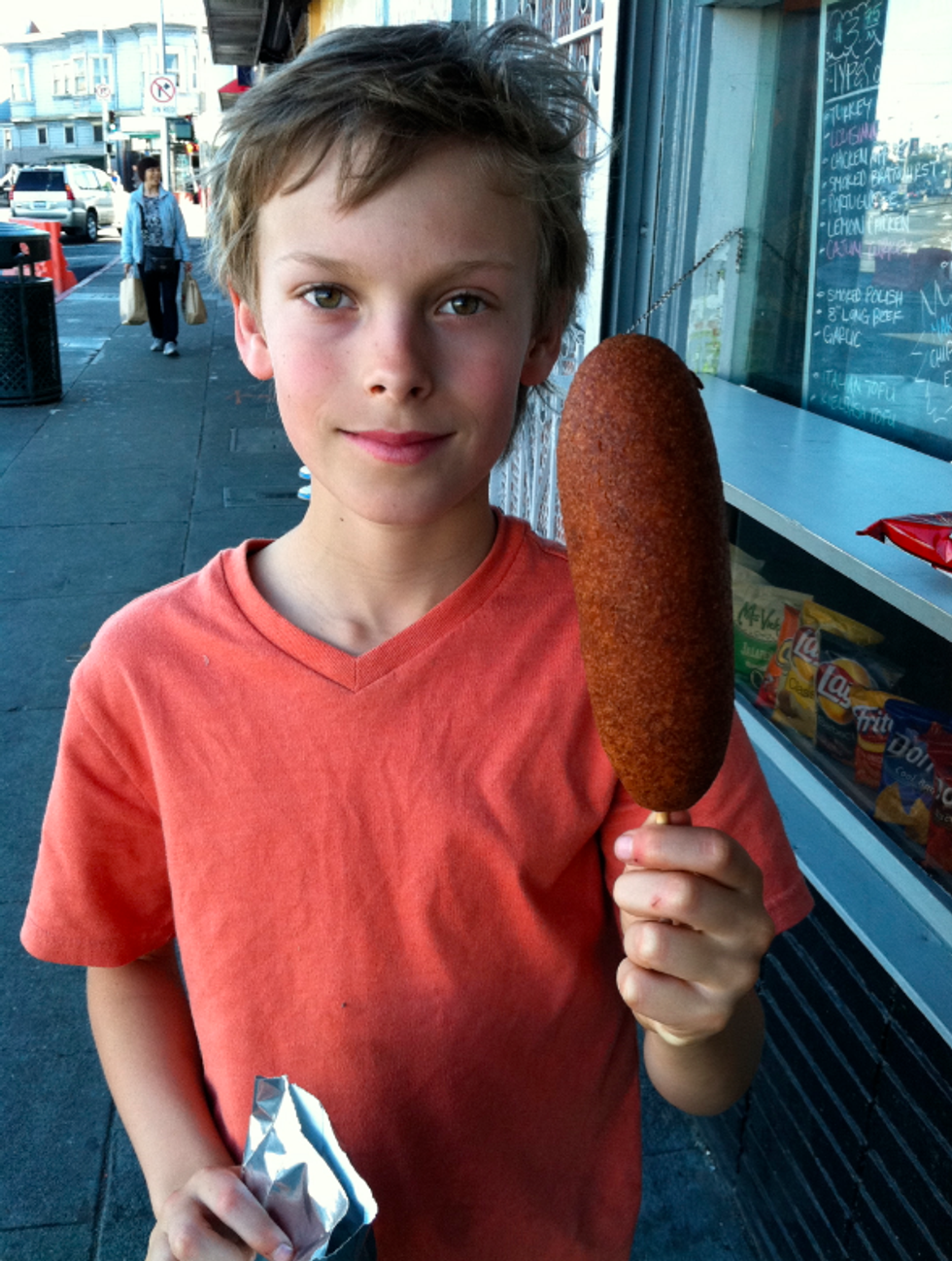 The picture above is of my son Silas, still flushed from a soccer tryout at the Crocker Amazon fields that use green turf. Even though I know it's not really grass, just seeing the expanse of green makes me feel like I live somewhere where the sprinklers water freely with suburban, who-cares-about-the-water-shortage bliss. Like a mirage, it makes me want to run towards it and roll around on it like a little kid. But for Silas's sake, I refrain.