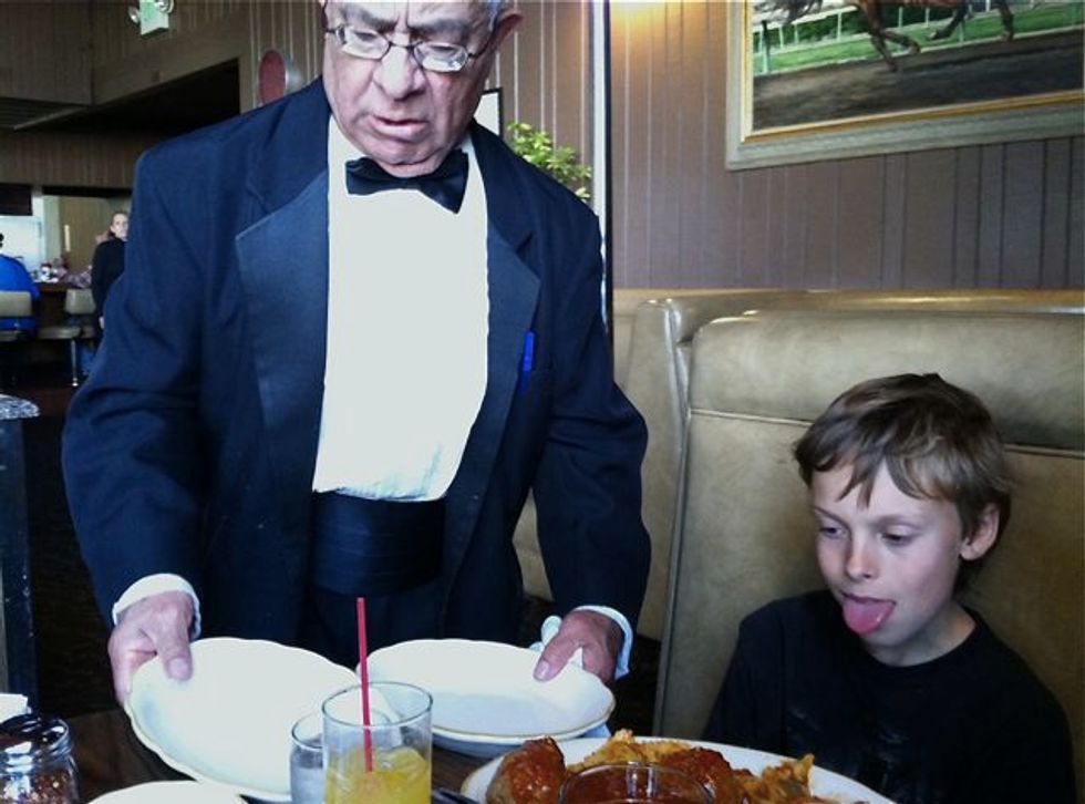The food is exactly how you'd expect it to be. Out of context, it's not particularly good. But in context, it's pretty awesome. Massive meatballs and slightly overcooked spaghetti for the kids (notice my son Silas panting in anticipation), veal scallopini and spaghetti for me, chicken piccata for the husband. When you order a glass of red wine, they don't ask, 'What kind?' The spumoni ice cream, which was actually great, is spiked with maraschino cherries and is a surreal color of green. Come to think of it, Joe's of Westlake might be the perfect place for a rainy Friday night. Don't think that because it's located in the pseudo suburbia of Daly City it's going to be less crowded than a popular restaurant in the city. The place was jumping.