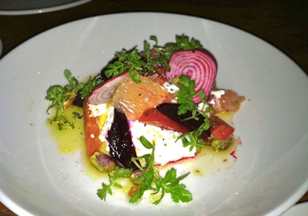 However, my week did not go without dining at the kind of places the New York Times is raving about. In this case, mostly new fangled ideas of Italian-American. I spent the weekend in Manhattan and did my fair share of eating at new and newish restaurants. Though the much celebrated Mexican-themed Empellon was a total disappointment, the Italian restaurants didn't fail me. My brother and I had a really nice dinner at Torrisi's Italian Specialties in Nolita which now serves a prix fixe meal for $60 and we got more than our money's worth. And I ended the trip at Il Buco Alimentari & Vineria in NoHo which is like a mini Eataly in that it is restaurant and marketplace in one. The pastas were spot-on, and the gorgeous beet salad with grapefruit and a big dollop of ricotta (pictured below) made me feel right at home. Call me SF-centric, but if I had closed my eyes, I could have been sitting at any of one of our city's Delfina spin-offs. There was lots of talk on the menu of organic and sustainable and specially raised pigs. A real respect for the ingredients followed in the cooking too.