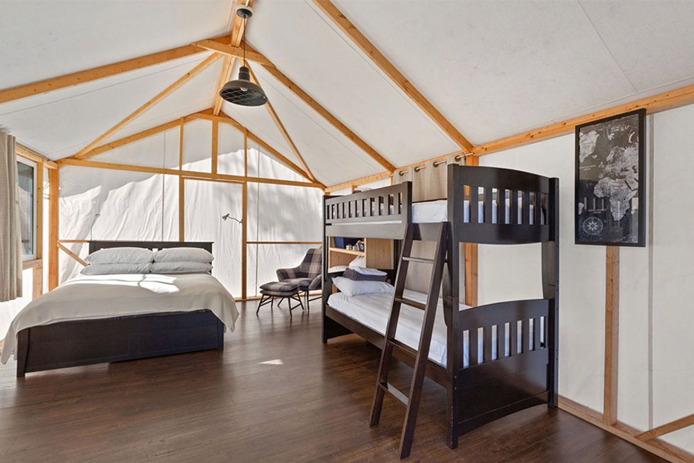 Onsite you'll find a variety of unique ways to stay, from traditional lodge rooms and tent bungalows to hard structure cabins and 50 amp RV sites. There are even pitch-your-own-tent areas.