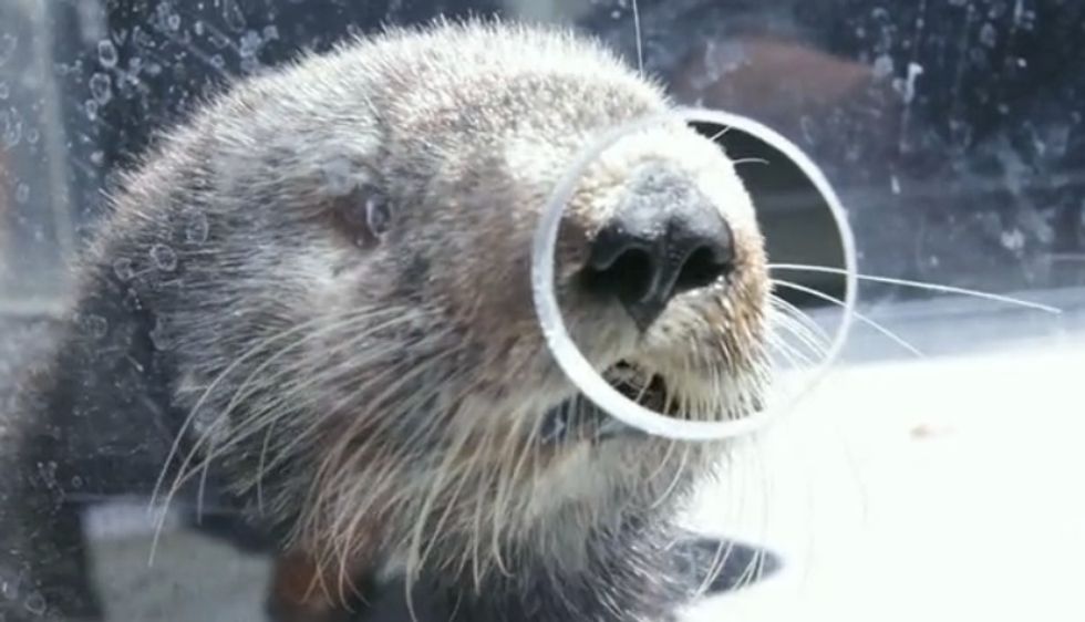 Watch the video below, as this adorable gal feeds the otters shrimp, play with them, and profess her love for ocean animals. We want your job, Nikki!