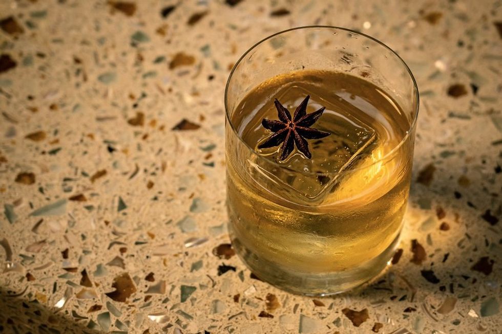 While I wait for the first dish to arrive, I sip a lemon chili cocktail from a rye-and-bourbon-forward menu kissed with South Asian aromatics. The only gin-based offering, my drink is herbaceous with yellow Chartreuse, lemongrass, mint, and pops with subtle Thai chili and Batavia arrack, a fermented red rice and sugar cane spirit. My partner goes for a clarified lassi punch, a buttermilk-and-yogurt-washed rum and scotch option spiced with green cardamom, cayenne, and white pepper, and soured with pineapple and mango.