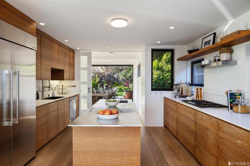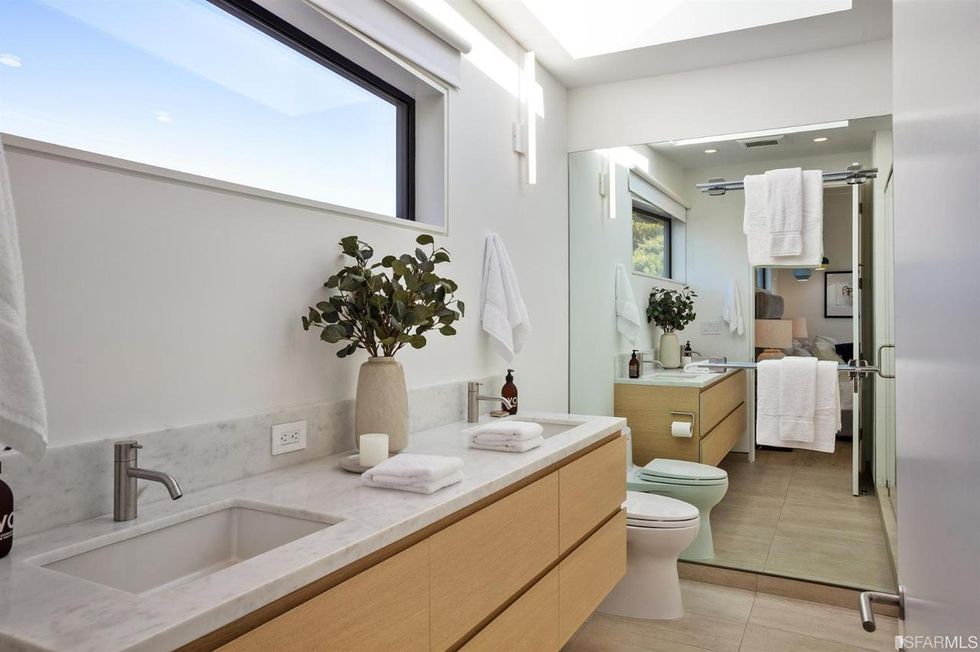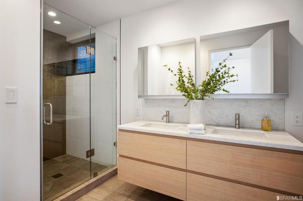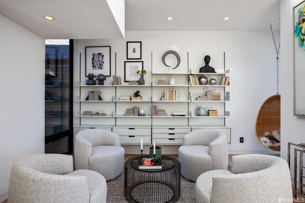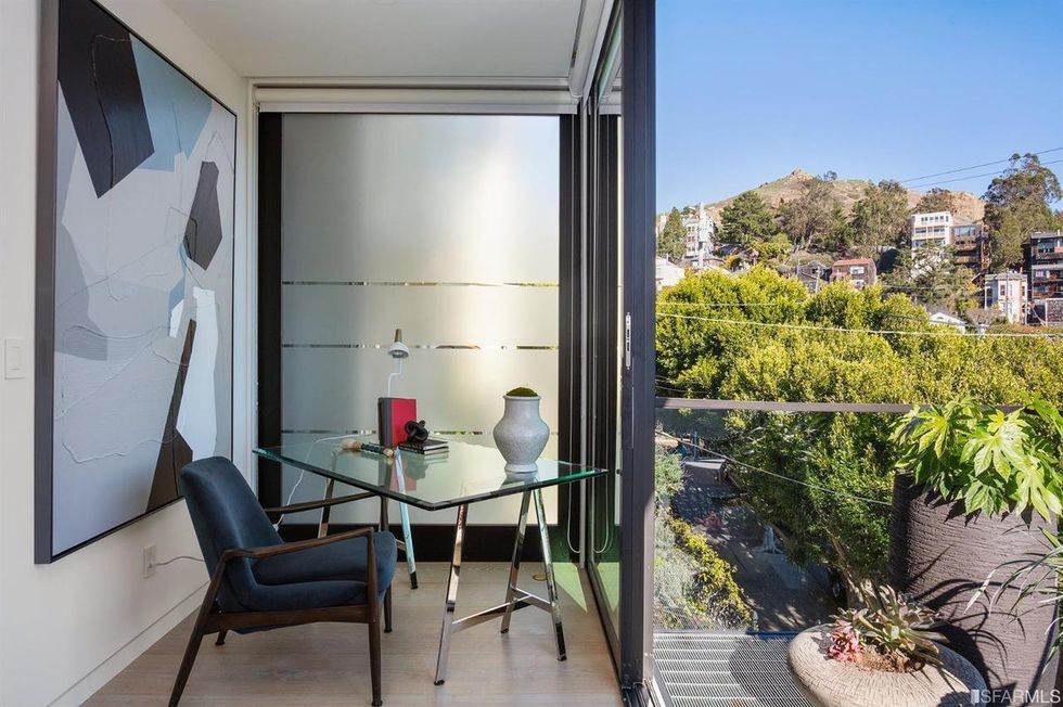Upstairs, the master suite has an office view terrace, sweeping walk-in closet, and zen-like bathroom. Although, those looking for an actual spa escape just pop downstairs to step into the sauna or soak in the standalone tub that's open to a cozy, private backyard with fire pit—it's all about the little luxuries.