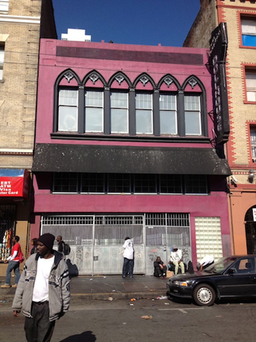 Fortunately, thanks to a progressive, charitable act, they will move into the landmark historical building at 80 Turk (that full-of-TL-flavor block between Taylor and Mason). The building dates back to 1922 and has gone through many incarnations over the decades, first as a gambling hall, then as the Buccaneer Tavern in the 1930s, the Gayety Theater (shown in B&W here) in the 1960s, and then the Dollhouse Theater porn palace until the early 90s when it fell into disrepair (and was likely used for illegal raves, as evidenced by international DJ tags on the basement walls).