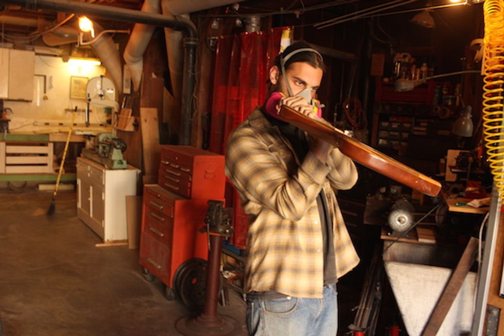 He's just getting started, but the San Diego native has already found a bit of success: His first customer was iconic skater Justin Figueroa, who also plays in the band Harsh Toke. And he even built a guitar for Steve Harris from Iron Maiden. In lieu of hanging up his business' first dollar, Pourfard hung an autographed photo from Harris right above one of his woodworking stations.