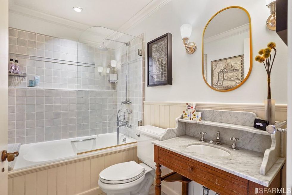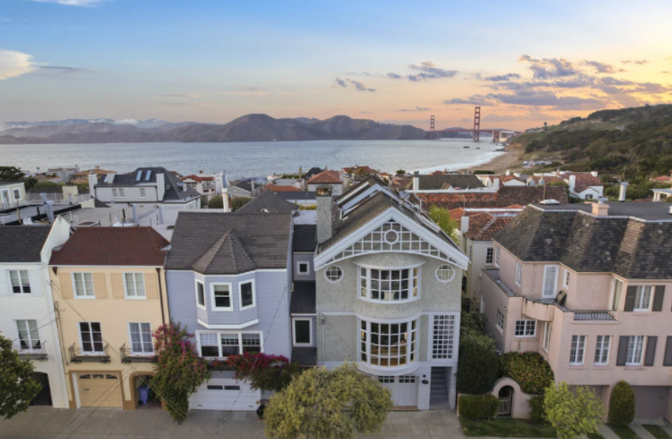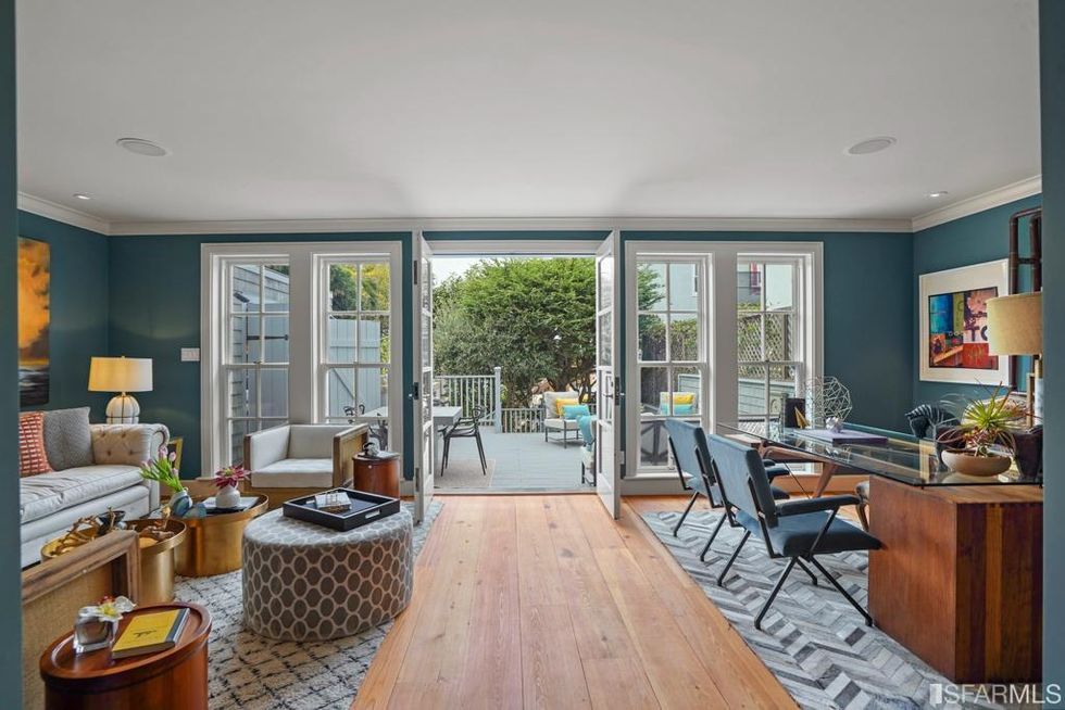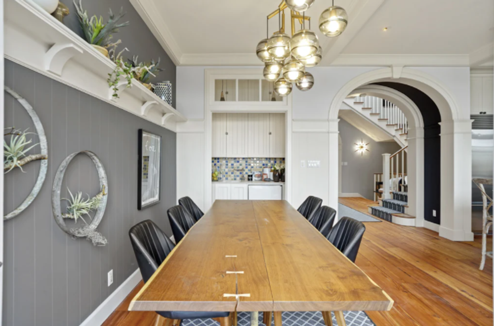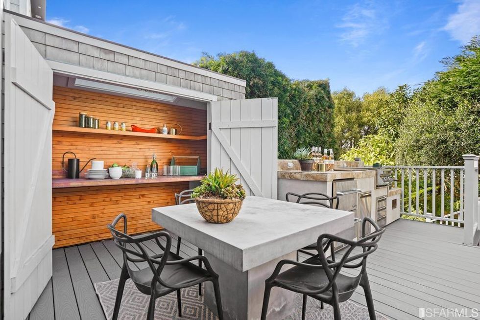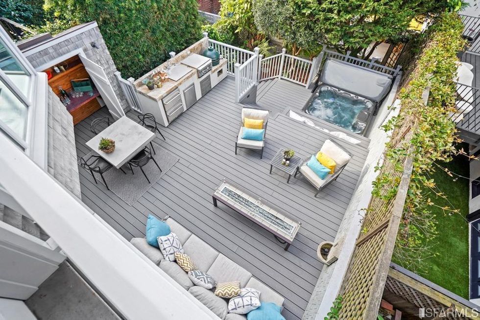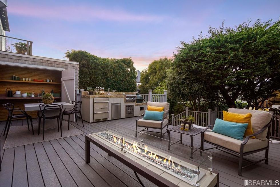 The outdoors here are an oasis with a full kitchen, fire pit, a sunken hot tub, and even an outdoor shower for rinsing off after a soak or trip to Baker Beach or China Beach, which are just a few minutes away.