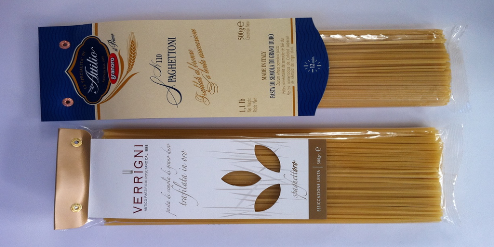 Pasta isn't all created equal though. I found out that it isn't just extruded through anything—some of it is extruded through gold. And if that's not fancy enough for you, there are dried pastas made with a single variety of wheat. (I see the future and it's menus with pasta dishes labeled as being made with "organic, single-plantation, single varietal" wheat.)