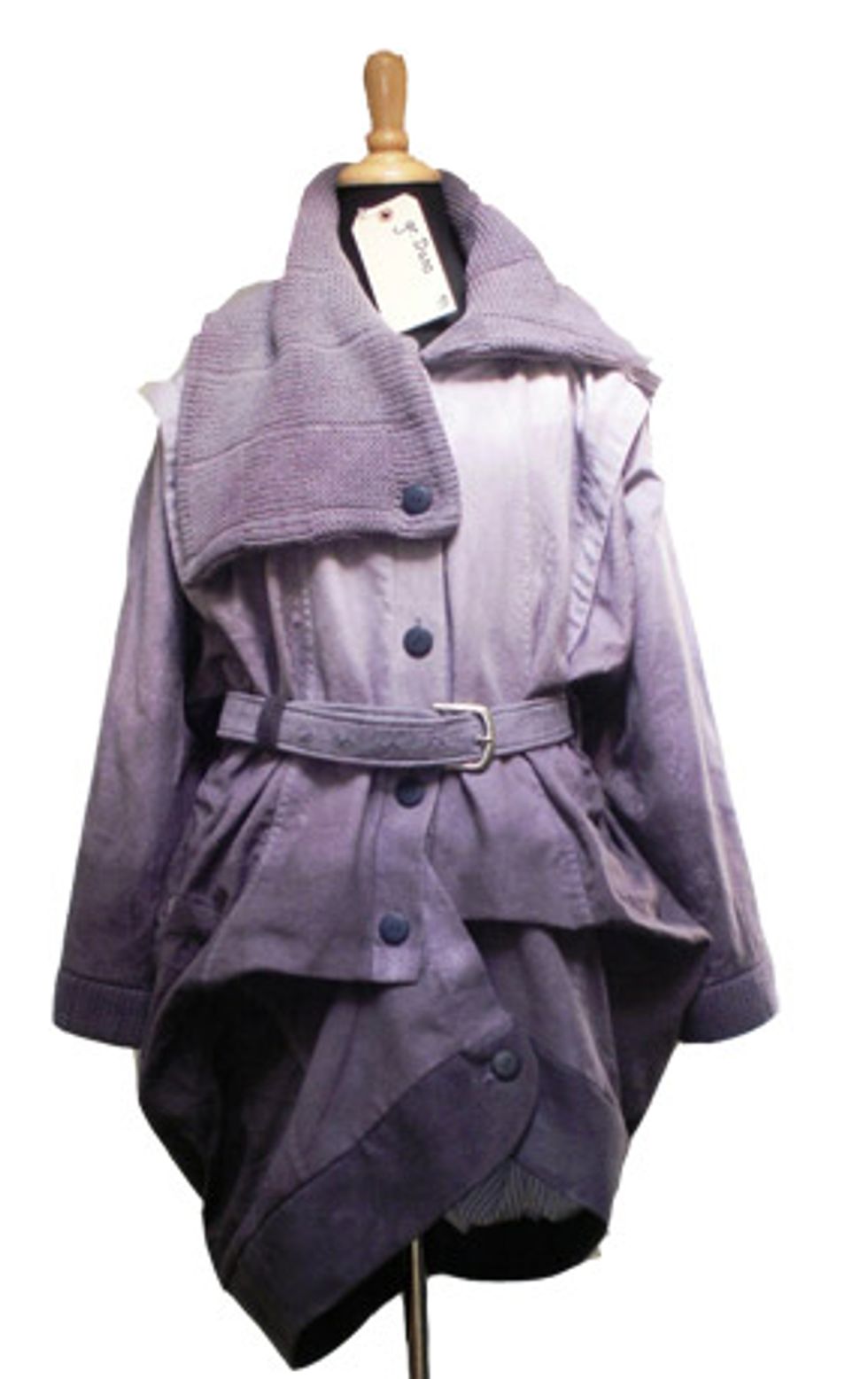 For the past few weeks, we've been highlighting a few of the designers who will be showing this Thursday, asking you to vote on their creations. We're pleased to announce that the winners of the popular vote are Jill Giordano and Brian Scheyer, the design duo behind San Francisco label gr.dano. Their hand-dyed dolman sleeve coat was inspired by their fog-filled daily morning drives across the Golden Gate Bridge from Sausalito into the City.