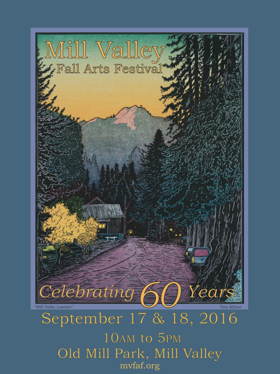 To help celebrate this landmark anniversary, renowned woodblock print artist and Marin resident Tom Killion—who began his artistic career when he debuted his prints at this festival at age 16—created a new work of art for the event's commemorative poster. Killion has served on the festival committee and board on and off for over 40 years.