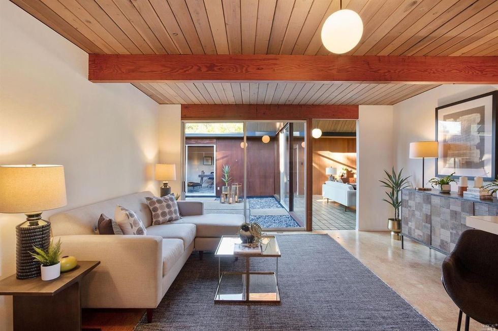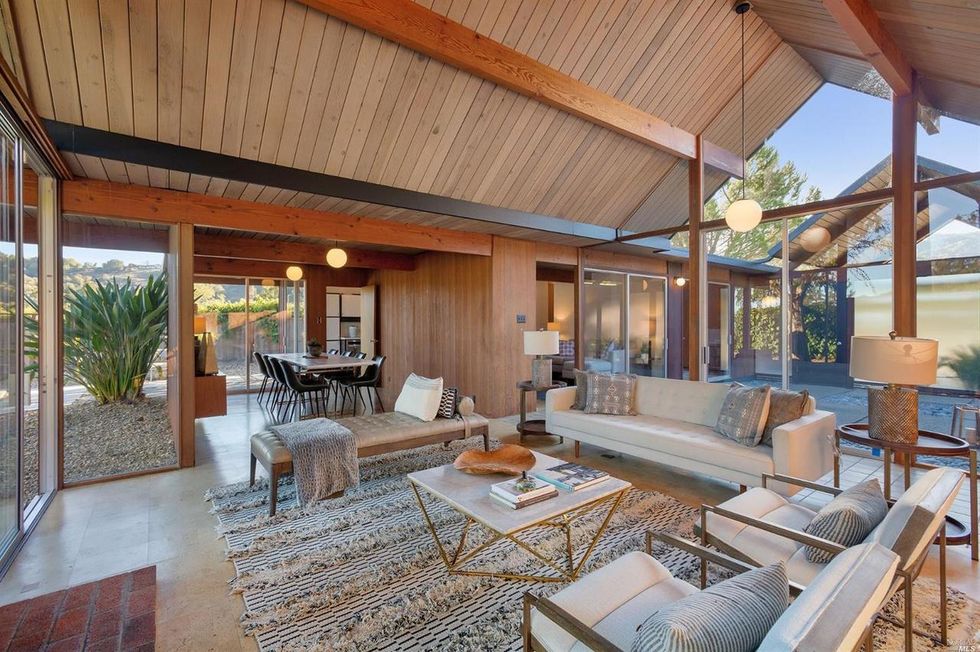 Devotees of the school of Joseph Eichler, the Bay Area real estate developer who brought midcentury modern architecture to neighborhoods across California, need only see the signature double A-frame to know the pedigree of this Marin County home.