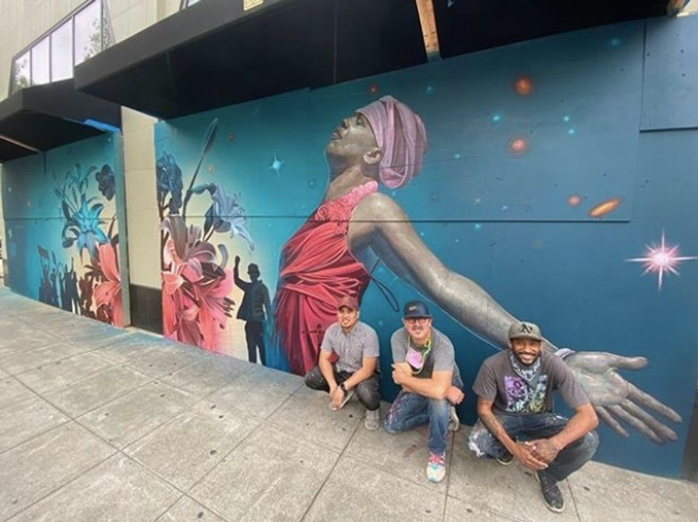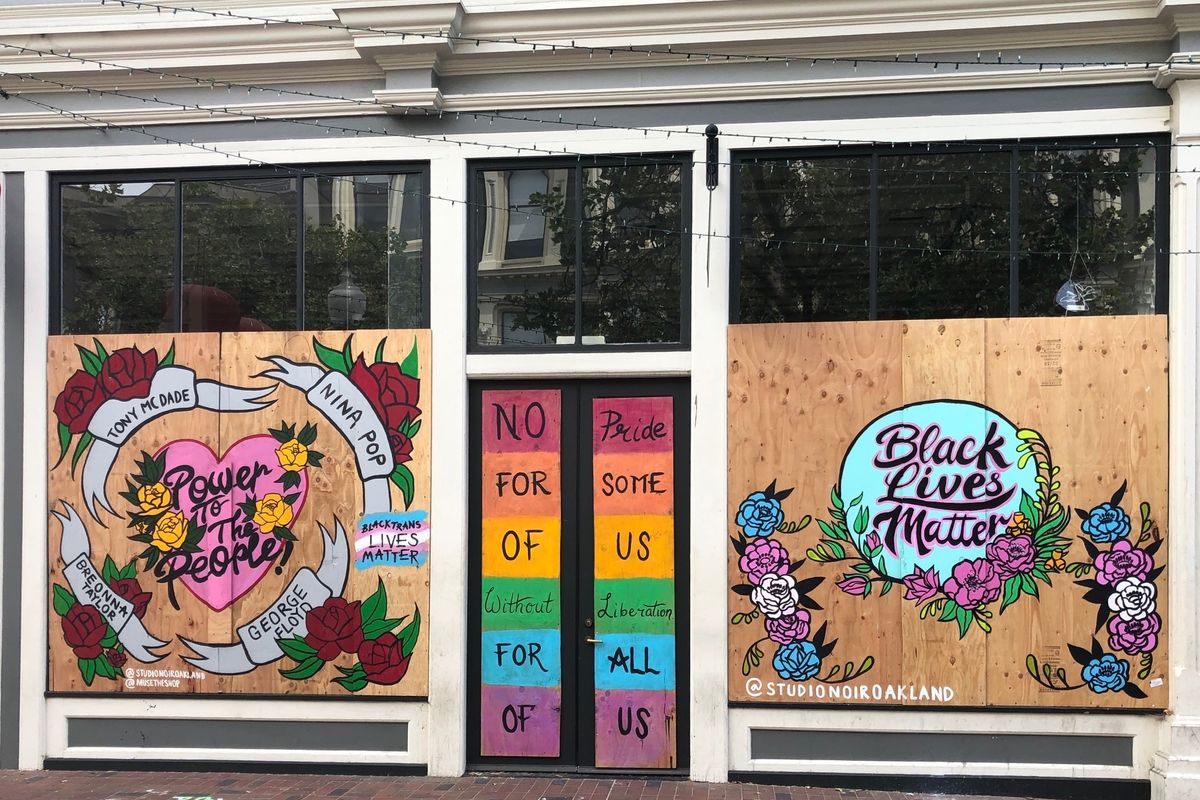 On their Instagram, Studio Noir Oakland stated, "We've been spending the last couple days getting some gorgeous murals up outside our shop where a lot of protests against police brutality have taken place. It's been so heartwarming to see so many artists outside showing solidarity."