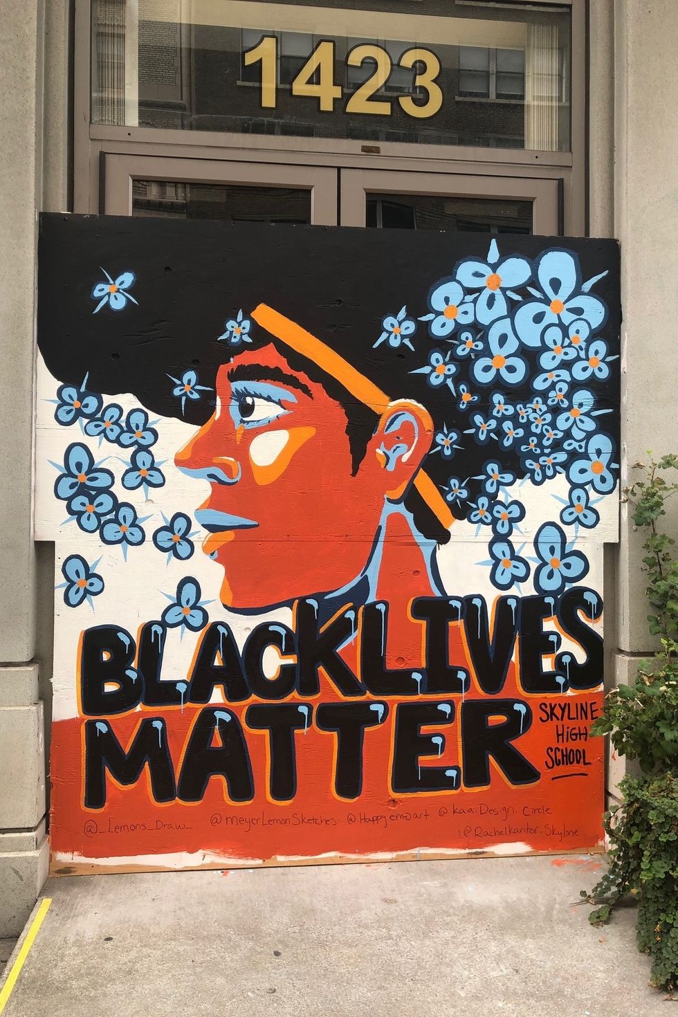 "Painting these murals makes me feel more like an artist than I ever have before," he said. "I feel like I have a voice and a purpose. The portrait I did of George Floyd is terrible. It was rushed and the only reference I had was on my phone, but that's not important—the message is, the reminder is. What has been going on in our country since its inception is disgusting. We need serious change, and I hope my art will help remind people every day."