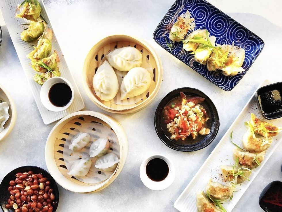 Dumplings are made in-house in an exposed, glass-walled kitchen so guests can see the cooks in action as each dumpling is hand-crafted.