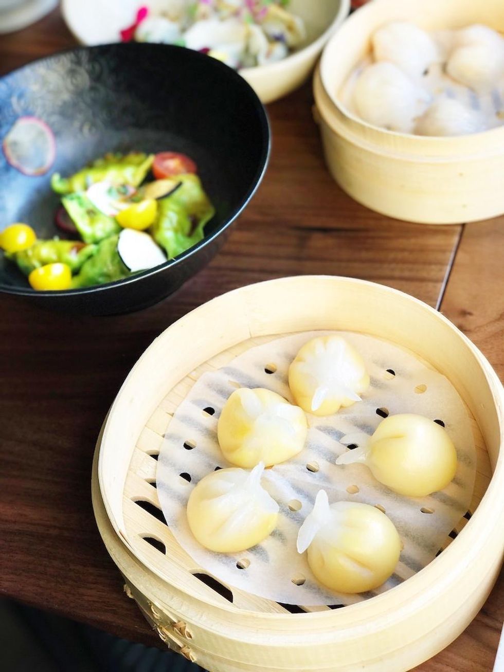 The different steamed buns come with a variety of fillings such as chicken with mushrooms and onions, heritage pork with green onions and cabbage, and char-siu roasted pork belly with a hint of peanut butter.