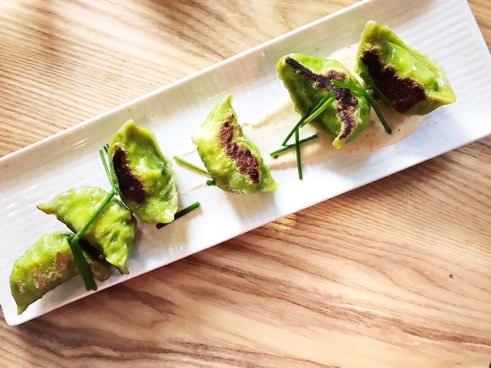 Green dumplings? Yes please! This gyoza is made with spinach to give the dough a gorgeous green color. Stuffed with seafood and accompanied by spiced chili butter sauce, this dish is a must-order.