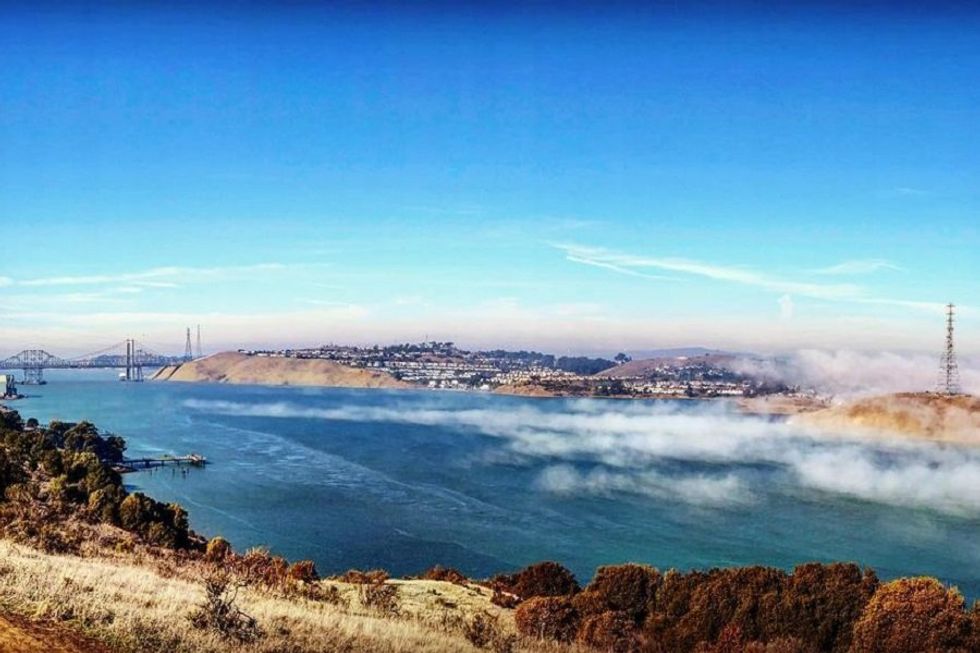 The hike: This loop along the Carquinez Strait Regional Shoreline (Carquinez Scenic Dr.) is short but its views of the water are unparalleled. Park at the Bull Valley Staging Area adjacent to the Carquinez Overlook Loop. Set out your picnic at the top of the hill for a direct view of the Benicia marshlands, Mount Tam to the west, and Mount Diablo to the east. (Pro tip: Bring a pair of binoculars to watch the shore birds swoop and soar up close). If you want to get a bit more walking in after lunch, pick up the mile-long Bull Valley Trail back near the parking area. It heads east along the shore, passing by Eckley Pier.