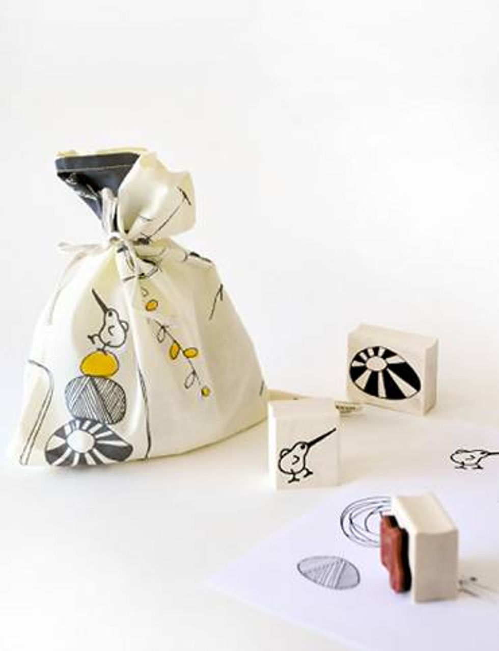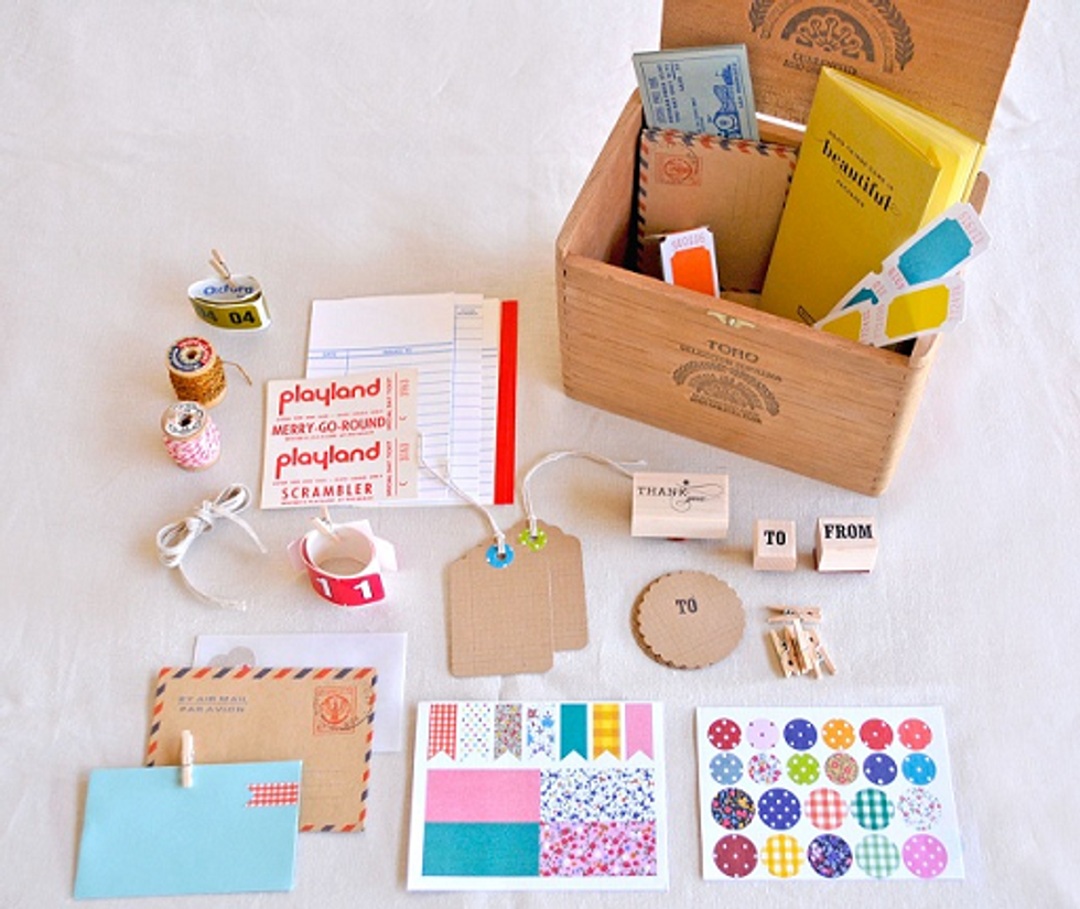New this fall, keep an eye out for fresh bucket bags (available in two sizes) that are great for stowing away knick-knacks, packing picnics, and as gifts for expecting moms or brides. Also, get your hands on Limitee, a limited edition gift decorating kit with an array of embellishments (stickers, tags, etc.), housed in a wooden cigar box. It's the hip scrapbooker's dream kit.