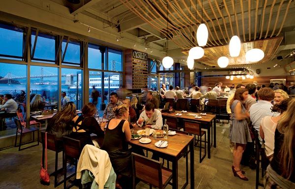 Hog Island Oyster Co.’s design cred has finally caught up to its legendary culinary rep with a new expansion by SF architect Cass Calder Smith. The maritime theme features cypress salvaged from a sunken ship and ipe decking from the Coney Island boardwalk. The ceiling, draped with nautical rope, is shaped like a hull, an homage to Hog Island’s original boat, Spatz. The new gastro offerings include cornmeal-fried oyster po’ boys and steak frites, a surprisingly turfy addition to the surfy menu. [ embarcadero ]