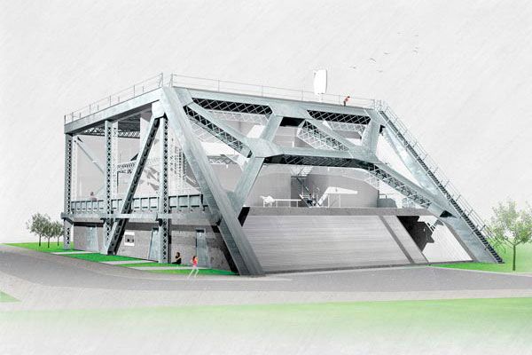 Sad fact: When Caltrans demolishes the now-defunct Oakland span of the historic Bay Bridge, the agency plans to scrap most of the metal. But if local tech entrepreneur David Grieshaber has his way, many of the pieces—from whole sections of the road to trusses to wire—will be used to build the Bay Bridge House, a modern, Earth-minded live/work domicile. A planted roof and solar panels will be installed to keep the energy consumption down for the massive 19,000-square-foot building’s single-family home, condos, and coworking spaces. The BBH is slated to break ground in an undisclosed neighborhood (with views of the Bay Bridge, natch).