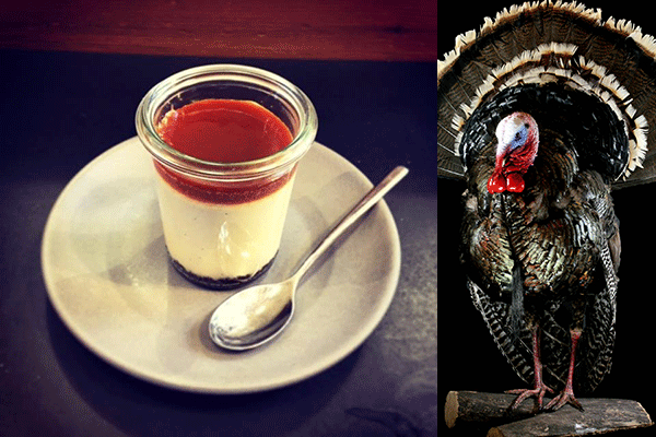 Despite the summery weather of the last few weeks (ah, rain and fog at last!), I've felt determined to capture a bit of the autumnal spirit. Wandering around Valencia Street, I found it aplenty. Start at Samovar Tea Lounge, where the scent of holidays wafts from the bubbling cauldron of steaming hot masala chai. Truly, this elixir will change your life. Get it to go, and mosey up to Dandelion Chocolate where the perfect pairing awaits in the seasonal maple cheesecake with Camino Verde (Ecuador) chocolate crust and bourbon caramel. Holy delicious. Feeling stuffed? So is the taxidermy turkey in the window of Paxton Gate—it can be yours for just $500. (I really kind of want this thing. Is that wrong?) Happy Thanksgiving! — Chloe Harris (@ChloeH415)