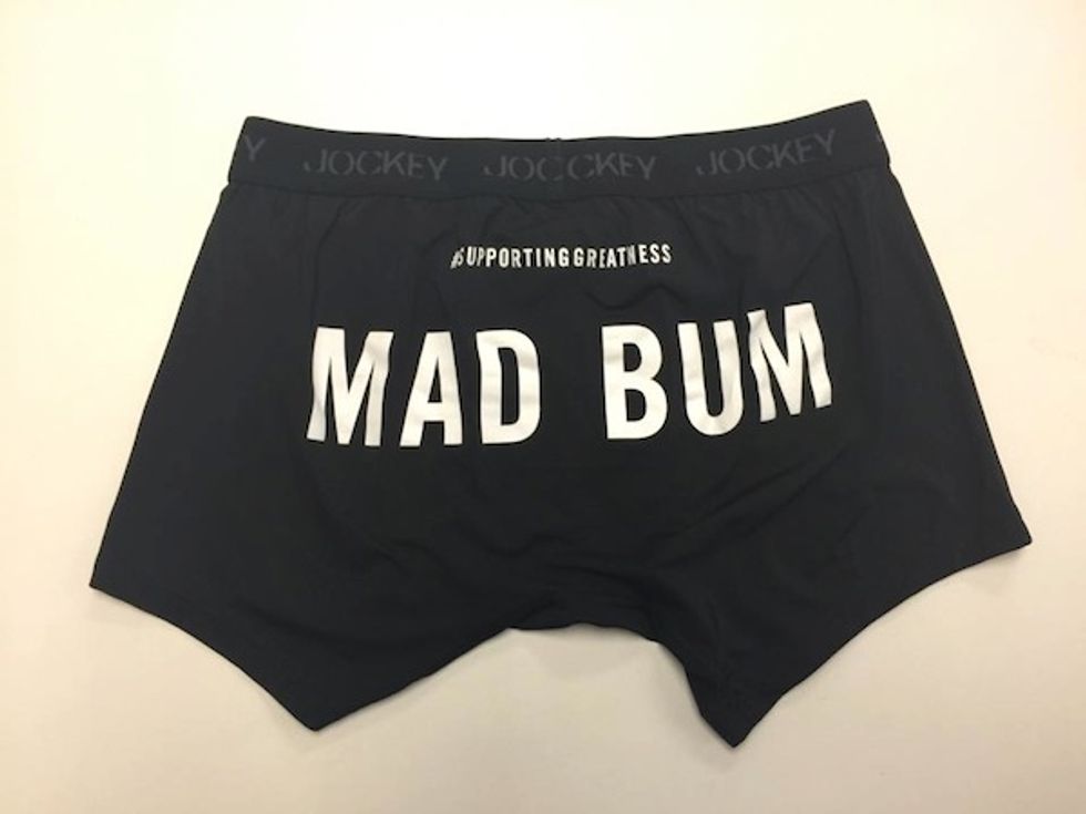 The finally arrived! This pair of MadBum underwear has been on my mind all week. After helping the Giants win their third World Series in five years, Madison Bumgarner allowed his moniker to be emblazoned across a limited edition of Jockey briefs. To see what they look like on, check out Jimmy Fallon who sported a pair on his badonk during The Tonight Show. — Brock Keeling (@BrockKeeling)