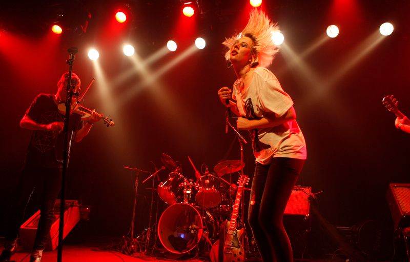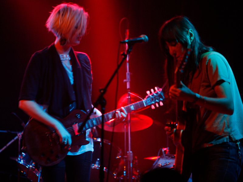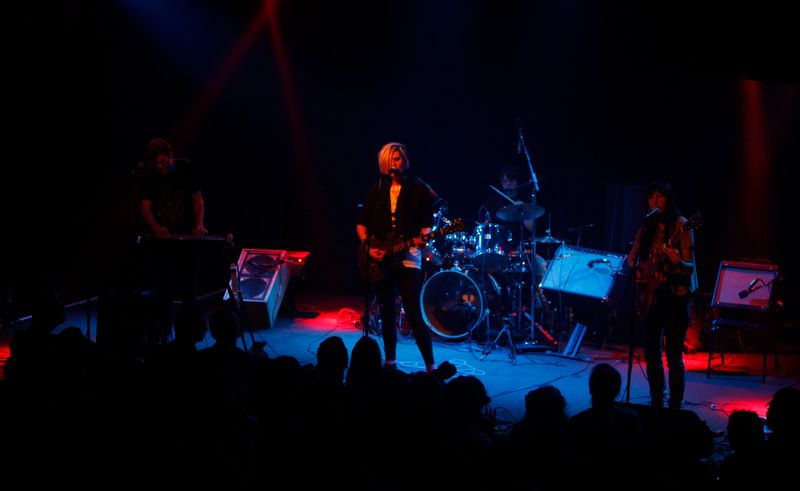 There’s certainly an art-school element at work here, especially in their live show. Each garage lullaby was outfitted with noise accoutrements and various atonal bells and whistles; Leif Shackelford’s electric violin and synth-tweaks added varying degrees of sonic textures, and Nicole Anderson’s (Erika’s younger sister) drums were minimal yet dramatic, with the one exception of her extended, minute-long fill on “White Like Heaven,” which is actually a song from Erika Anderson’s previous band, Gowns (another brainy noise-ditty project worth discovering).