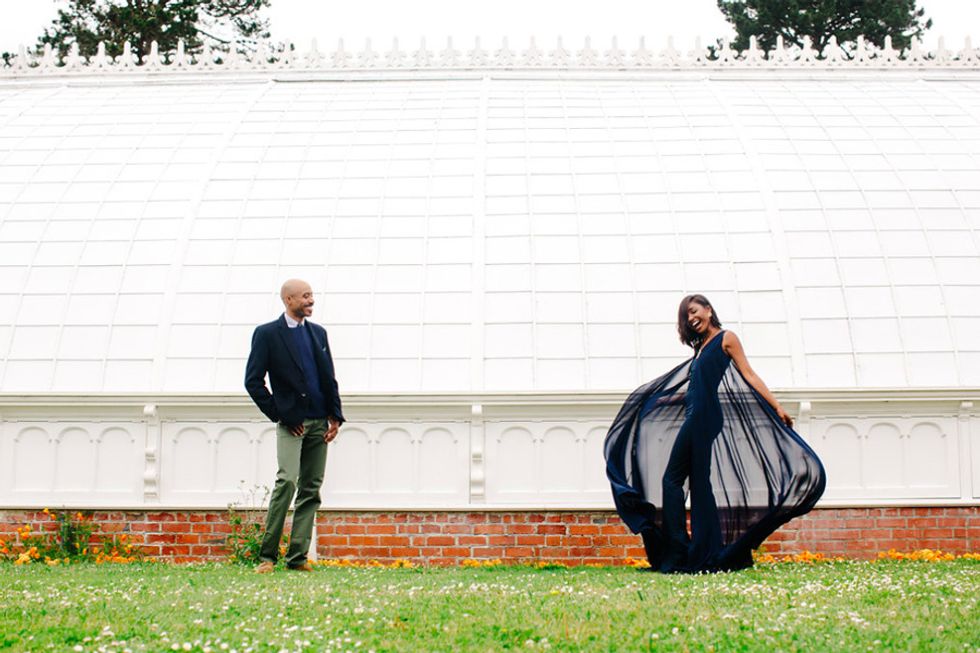 Landscapes may be one of the most popular choices for engagement pics, but there's perhaps no more artful backdrop to be found than at one of the city's choice museums. Here Rachael and Mohammad made a sunset of their own in the halls of the de Young.