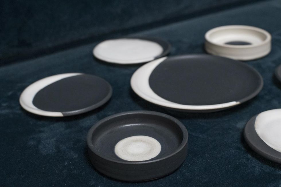 "When I first started working with chef Val Cantu (Californios), I showed him two black glaze choices for his taco plates. He wished there was a middle black glaze color and asked me to combine them. This hadn't occurred to me; it is not the first thing a ceramicist would do. But I thought, why not? I combined the glazes and the result was stunning. That glaze is now my trademark semi-matte ink glaze. Val and I often build off each other's ideas when brainstorming at the restaurant."