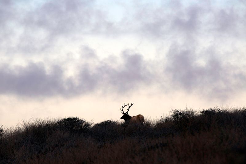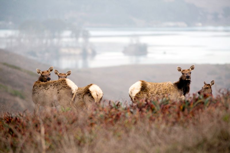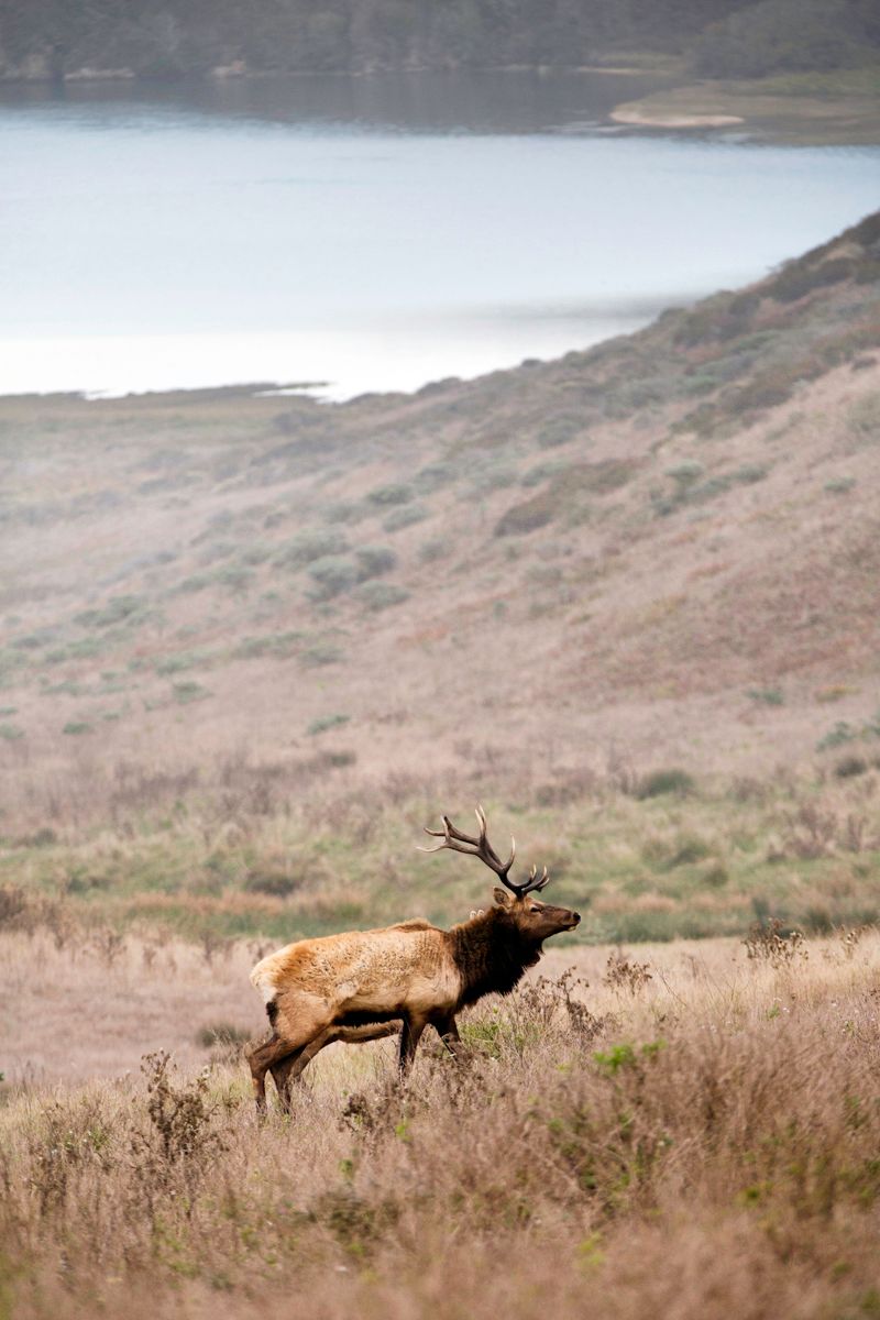 Want to see them for yourself? Head out to Point Reyes National Seashore and follow Pierce Point Rd to the very end, at the far north end of the park. Park at Pierce Point Ranch and follow the Tomales Point trail along the gradual ridge walk. You'll see elk roaming on either side of the trail, so it shouldn't take you too long to spot them.