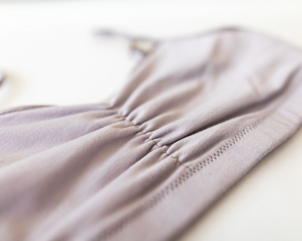KK: "We use a unique combination of fabrics to provide soft, luxe and supportive bras that are always wire-free. The designs are cut to avoid incisions and nerve damage sites, lymphedema, irritation around radiation areas, and chemotherapy ports. Every bra has internal pockets that can hold a thin shaper pad (to help with discretion or asymmetry) or prosthetic breast forms, and all of our seams are internal so that there are no scratchy stitches to cause irritation. Nearly all of our fabrics are sustainable, meaning they are naturally antimicrobial and breathable, making them good for the body and the planet. Everviolet products deliver on a trifecta of comfort, fit, and fashion."