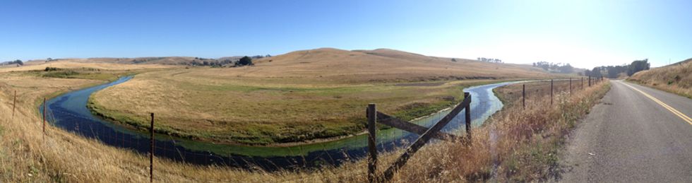 3. Roll down to the western edge of the Two-Rock Valley, and at 10.3 miles turn right on the Fallon-Two Rock Rd. It won't take you long to realize this section of the road is less traveled—surface is a bit bumpy from years of patches atop patches—but hang in there, it improves as we cross into Marin County. NOTE: You may hear gunfire as you approach Alexander Rd. Relax, you're not the target. It's only the shooting range across the valley.