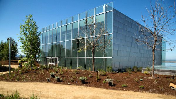The building itself it meant to blend in with the its Menlo Park surroundings.