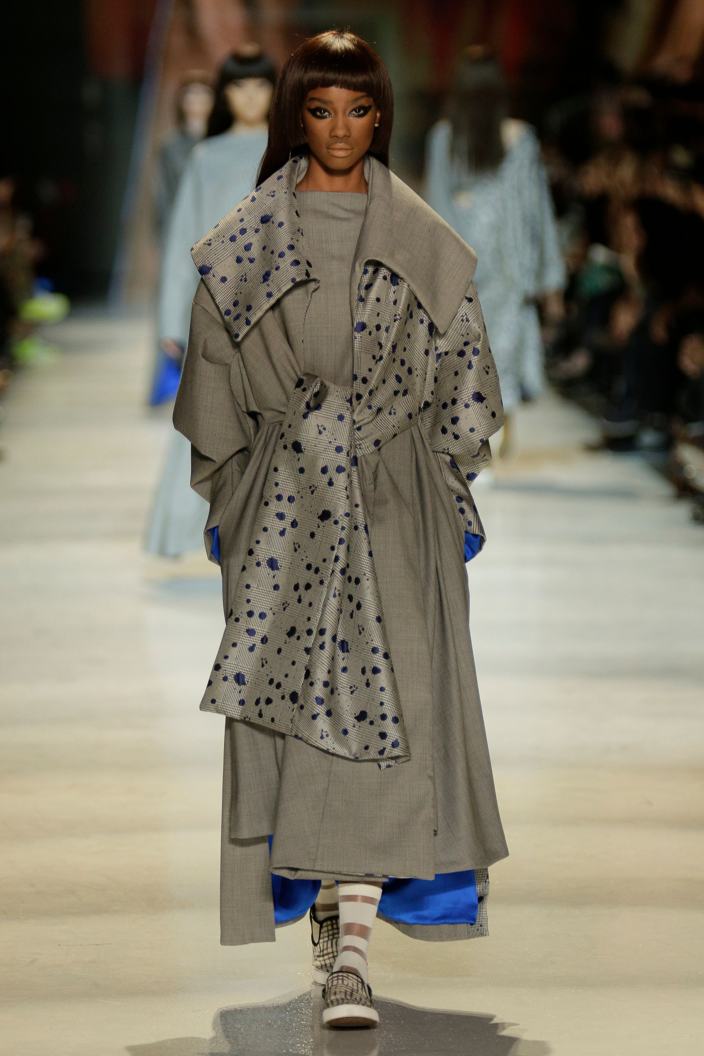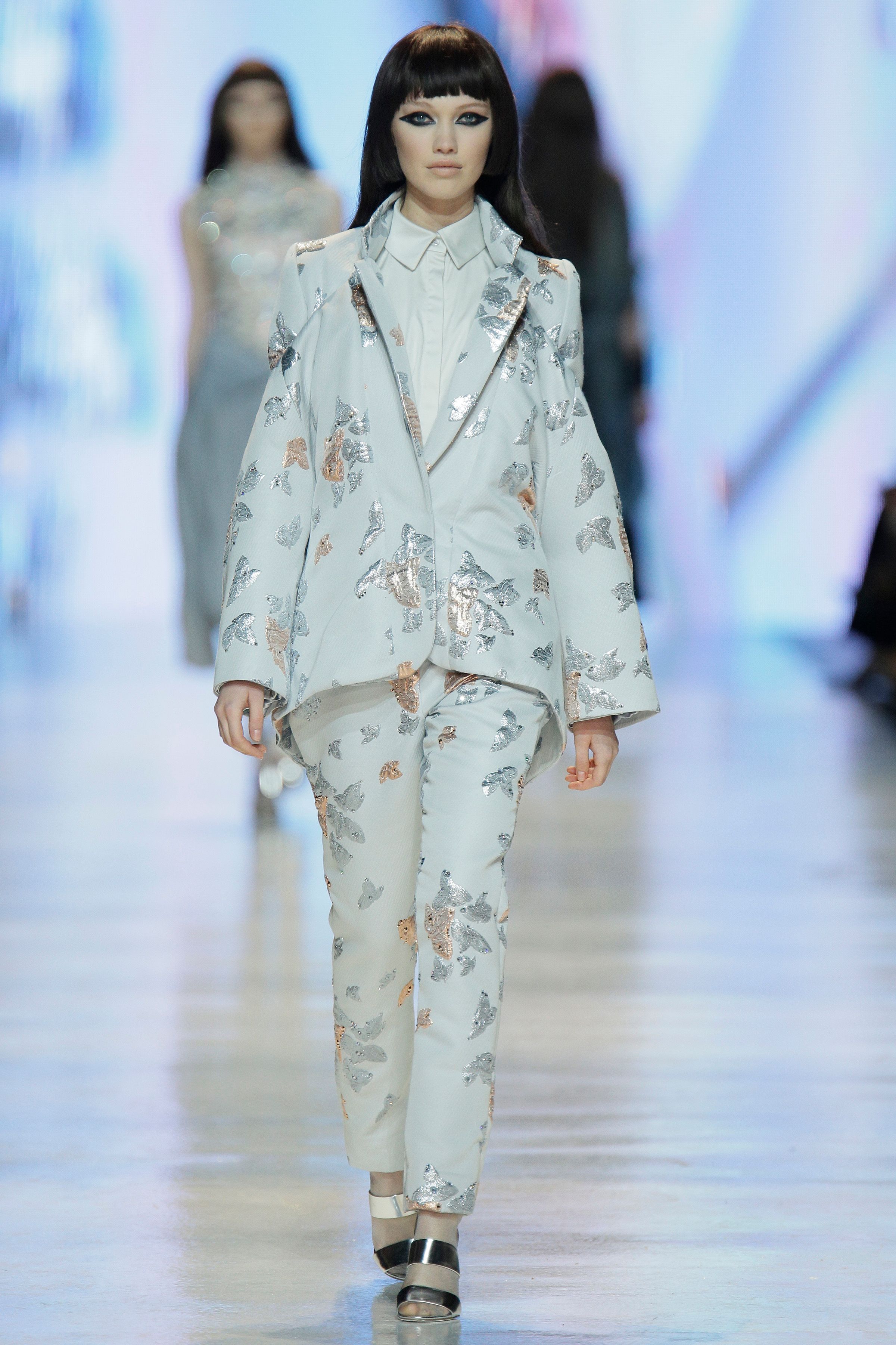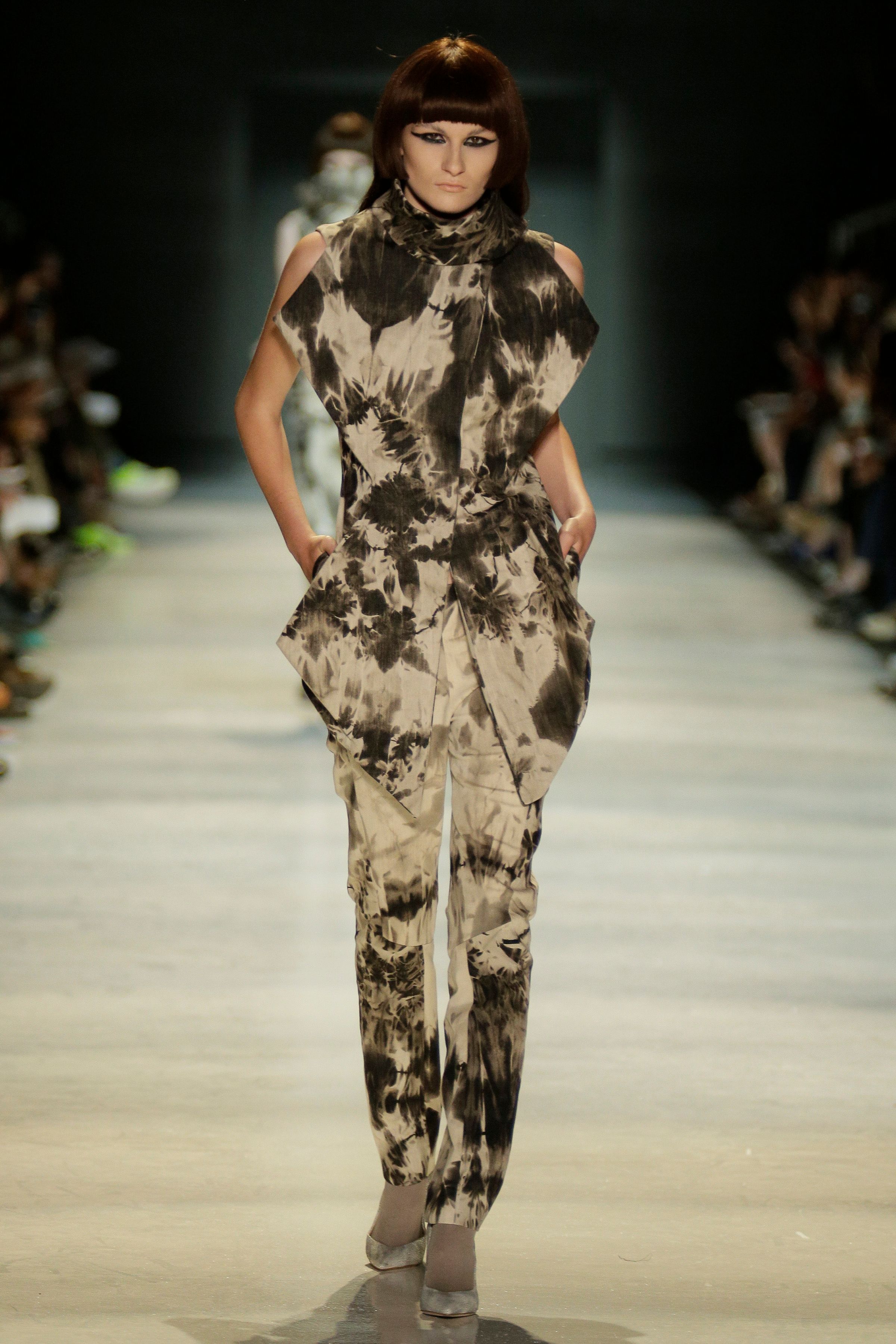 The shiny white raingear looking material on Seth C. Olsen’s pullover combined with distressed baggy pants and high necklines brought back a delightful ‘90s moment. Jenny Hien Hoang closed the show with beautiful X-ray styled prints on innovative and modern silhouettes.