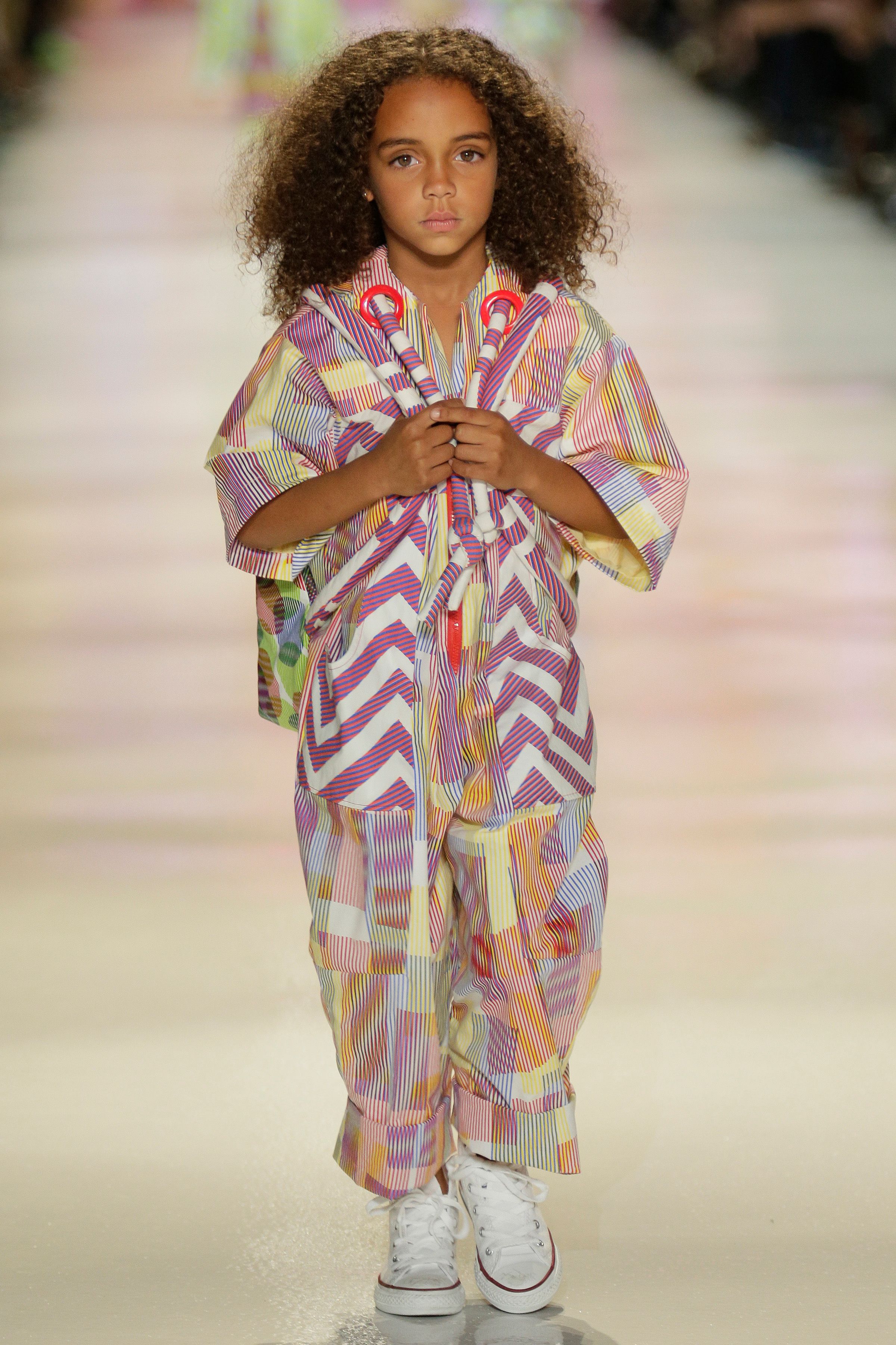 The efforts of the designers at the Academy did not disappoint. An excellent show complete with 20 collections from 30 collaborative designers, which included womenswear, menswear, childrenswear, knits, wovens, jewelry, and metal arts collaborations. Highlights of the show (hands down) were the sparkling pieces of rose quartz that covered the sleeves and backs of Aile Hua’s designs, as well as the parade of child models, (the crowd went wild) who were modeling vibrant prints and geometric shapes designed by Jordan Rae Epstein; Epstein was awarded the San Francisco Paris Sister City Scholarship Exchange in Paris, France to study at L’Ecole de la Chambre Syndicale de la Couture Parisienne, and Sheni Moshabesha, BFA Textile Design.