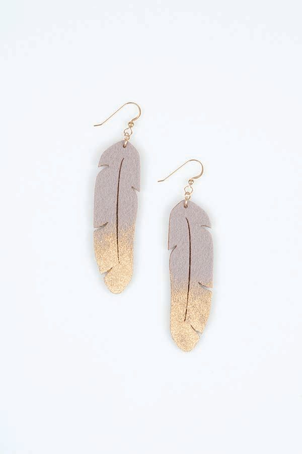 Feistyelle is also inventive. The Stacked Lotus Earrings ($29) are 6-in-1 and you can wear the necklaces two ways—one style with the clasp in the front and the other as a lariat. The Leaf Earrings ($28) can be stacked, while the Feather Earrings ($28) are a 2-in-1 style that can dangle or bend into a unique feather hoop design. The Gold Dusted Feather Earrings ($36) and the Special Edition Neon Earrings ($29) are the most fashion forward.