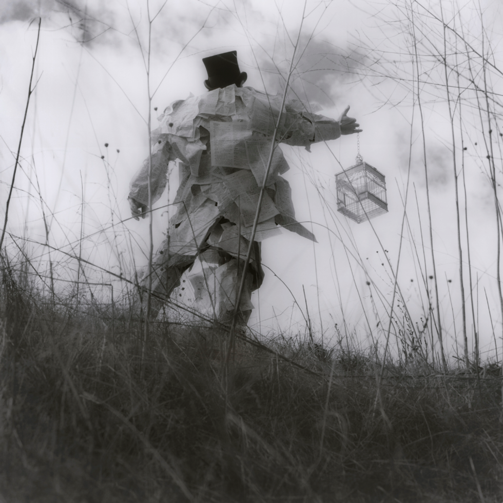 Conjure up memories of lonely Alice finding her way through an unfamiliar magical world in Alice in Wonderland, or relive James Henry Trotter's surreal, peachy adventure with strange insects in Roald Dahl's James and the Giant Peach. Now, hold tightly onto that vision, and take a gander at the images here by LA-based artistic duo Jeff Charbonneau and Eliza French. The similarities are striking, so much so that Photograph magazine referred to their work as "Fellini's take on Lewis Carroll."