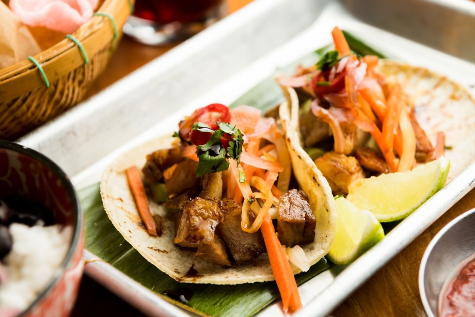 - Lechon Kawali Tacos & Coconut Horchata at Mestiza (crispy pork belly tacos)