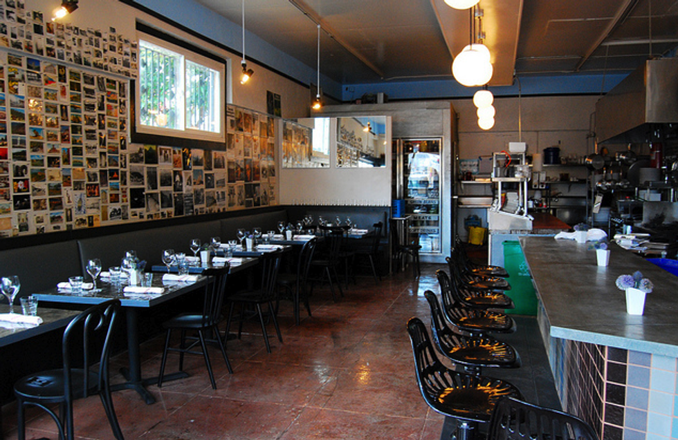 Americana is the theme: vintage postcards cover the walls; old, metal tractor seats made into stools (something bare legs can't recommend) are parked at a counter overlooking an open kitchen. The whole space opens up to Pinkie's Bakery which opens up to Icon, a small dance club. There's a progressive dinner in here somewhere.