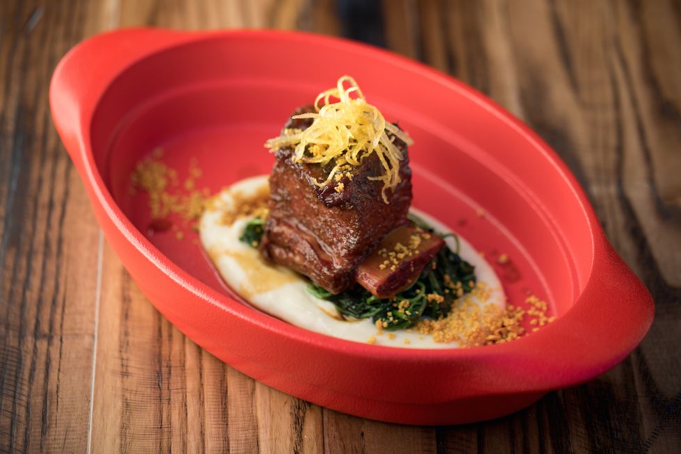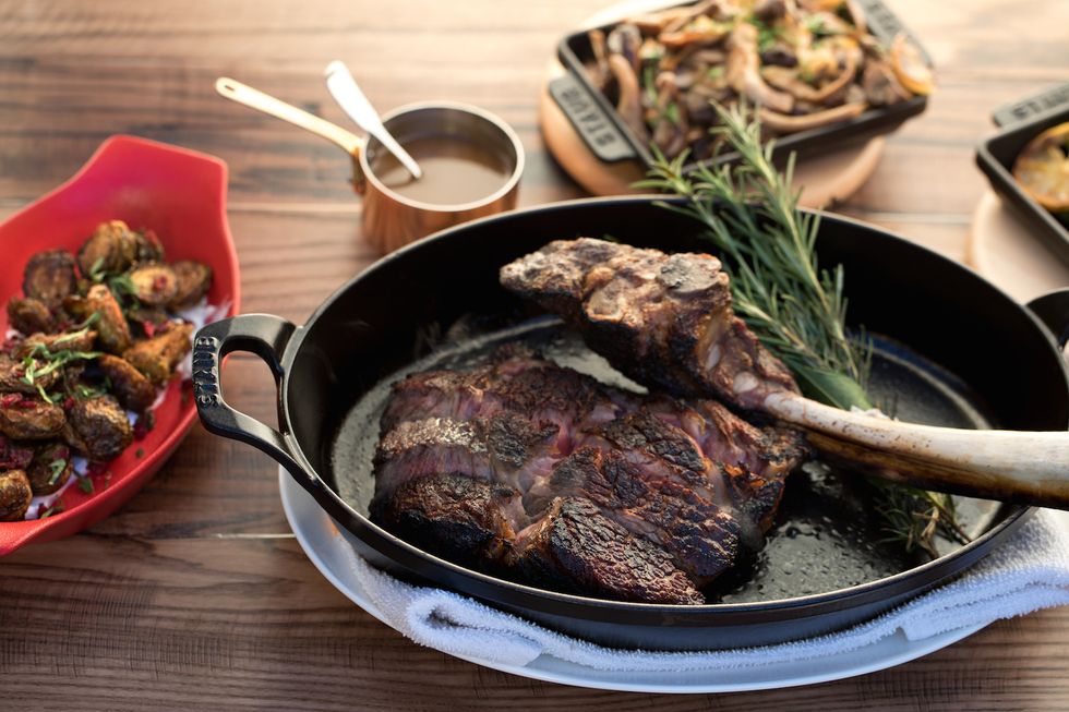 For starters, there's a nice selection of hot and cold plates. I'm a sucker for foie gras—I order it any chance I get out of fear that the California ban will go back into effect—but although tasty with a unique citrus element, the other three starters that my husband and I tried diminished its usual spell. Falling off the bone as I went to take a bite, the Painted Hills Farm short rib pastrami was especially memorable; the shaved candied lemon on top balanced out the meat's expert smokiness with a touch of sweetness. Then the littleneck clams Casino dish, served with bacon, charred lemon, and garlic butter, was impeccably light and refreshing, a friendly segue into the incoming onslaught of meat.
