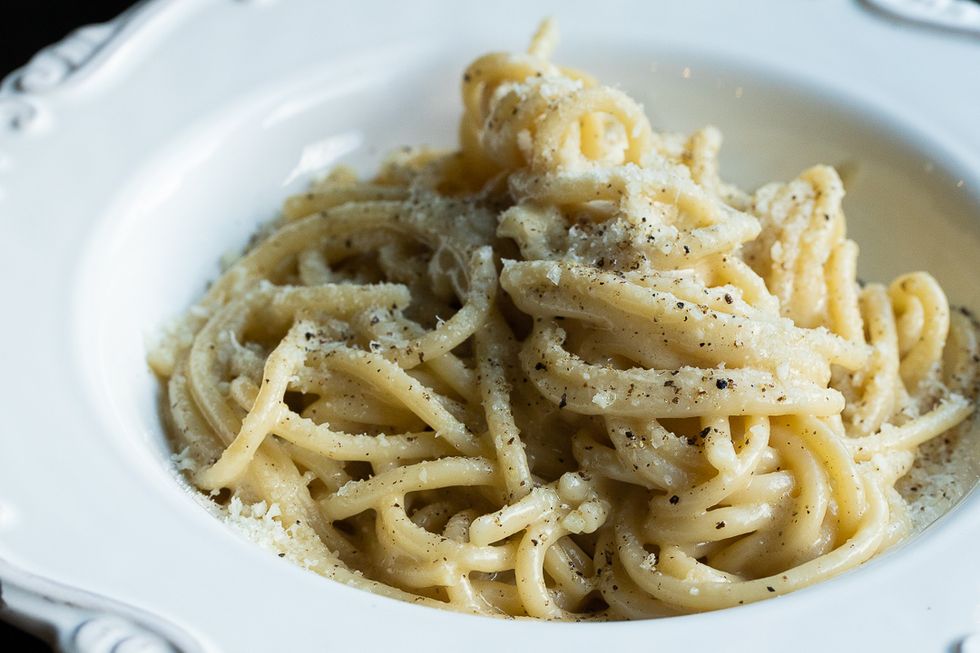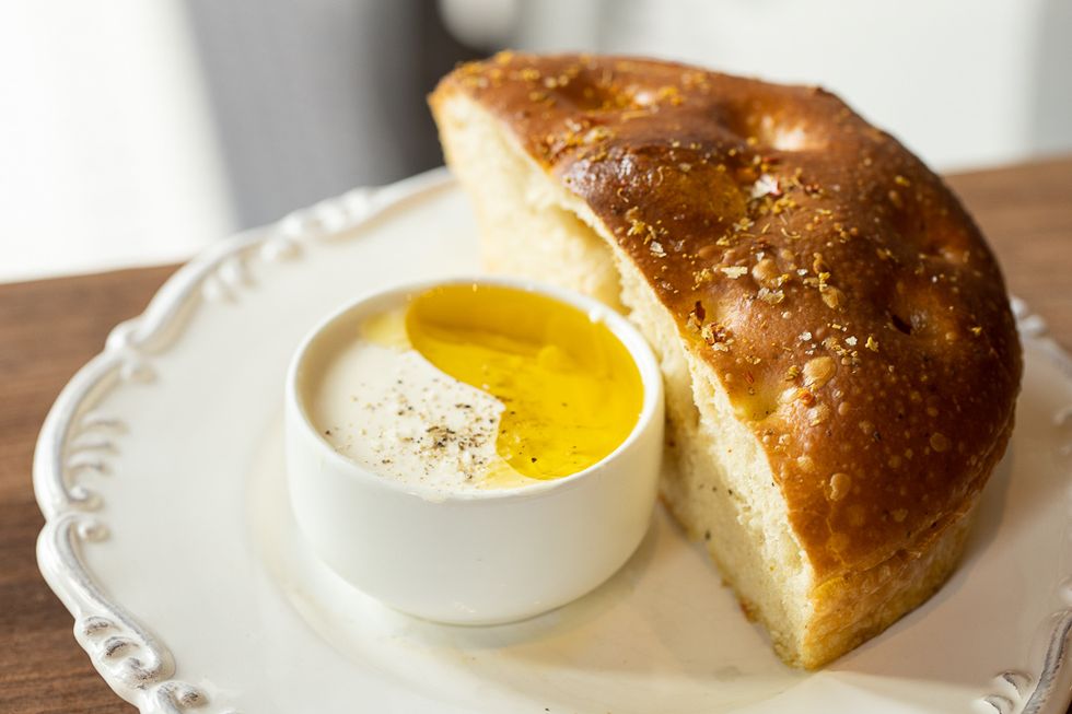 For sure we could hide out in here for hours ordering up plate after plate of so many tasty snacks, because unlike the more formal restaurant upstairs, Che Fico Alimentari channels Italian wine bar vibes with a focus on a variety of meats, cheeses, breads, marinated antipasti, and a few pasta dishes all designed for grazing...and to pair well with vino—there are more than 200 wines here, largely from Piedmont, Tuscany, and Sicily, curated by wine director Francesca Maniace. It's how Nayfeld and chef de cuisine Evan Allumbaugh enjoyed eating during their travels in Italy.