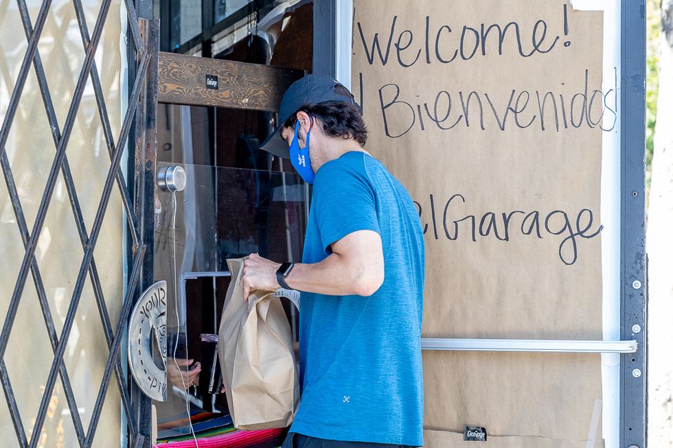 Diners must order ahead—the restaurant is taking absolutely no walk-up orders, so don't even think about it—online when reservation slots open at 1pm on Wednesdays. Pickups, spaced at five-minute intervals—are available Friday through Sunday, making El Garage a perfect weekend excursion for San Franciscans. Don't bother showing up early. When your name is called, you can collect your bounty through a plexiglass window. Then comes the fun part.