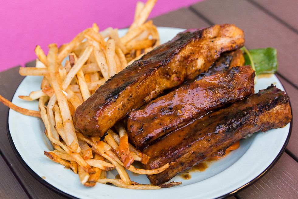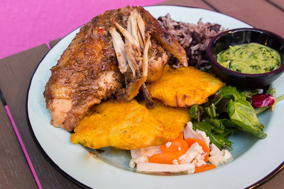 It would be tough not to smile while inside this sunny little space—its pink-and-green fern-patterned ceiling, hanging plants, and lively semi-open kitchen all signal a good time's coming. And there's nothing sad about the hearty plates of wood-fired jerk chicken, thick ham-and-pork Cubano sandwiches, and aromatic dishes of whole roasted red snapper either. Tostones (crispy plantains), maduras (sweet plantains), and congri (rice and black beans) are savory supporting sides.