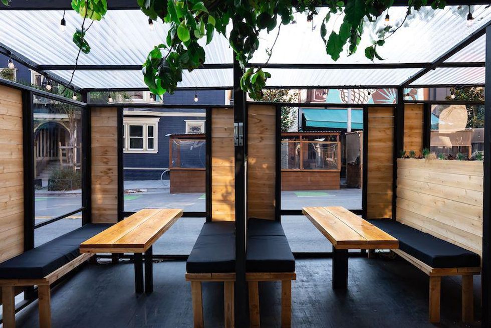 You'll probably want to imbibe your way through the menu of six signature concoctions, including the refreshing Faithful Fool (calvados, yuzu sake, and green apple), the creamy and tropical Okinawa (rum, Okinawa yam, oat milk, and plum) and, our personal favorite, the Linda Linda (clarified milk punch with floral undertones). The hand-cut ice cubes are crystal clear and the straws are metal, adding to the cool factor. Iris also serves a small selection if izakaya-style bites including karaage chicken, black curry smoked eel, and Hog Island Oysters. There is also a selection of Japanese whiskies and stylish parklet.