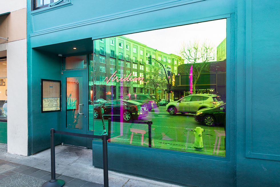 Arriving at the brightly painted teal exterior, you'll see what he means (or you could drop by Viridian's neon-pink-and-purple website to immediately get the vibe: "Fuck yeah, we're open!" the homepage reads). From the street, the windows have a reflective metallic wash of iridescent hues; once inside, you'll need to let your eyes adjust.
